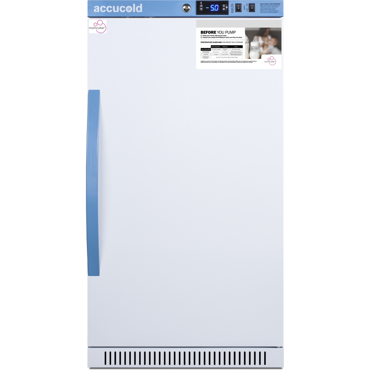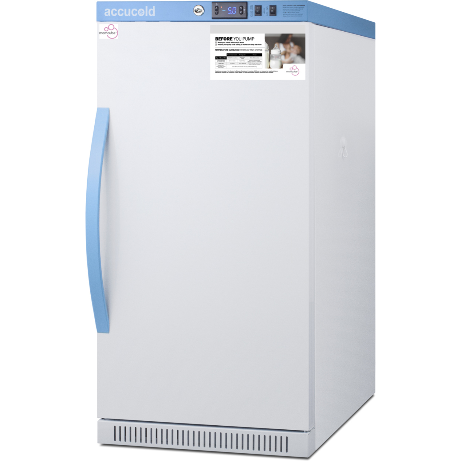 Accucold's MOMCUBE freezers are designed and purpose-built for breast milk storage. All MOMCUBE® units are laboratory-tested to maintain proper breast milk temperature, as recommended by the CDC and ideal for maternity wards, hospitals, NICUs, employee wellness rooms complying with Section 4207 of the Patient Protection and Affordable Care Act, and other facilities.