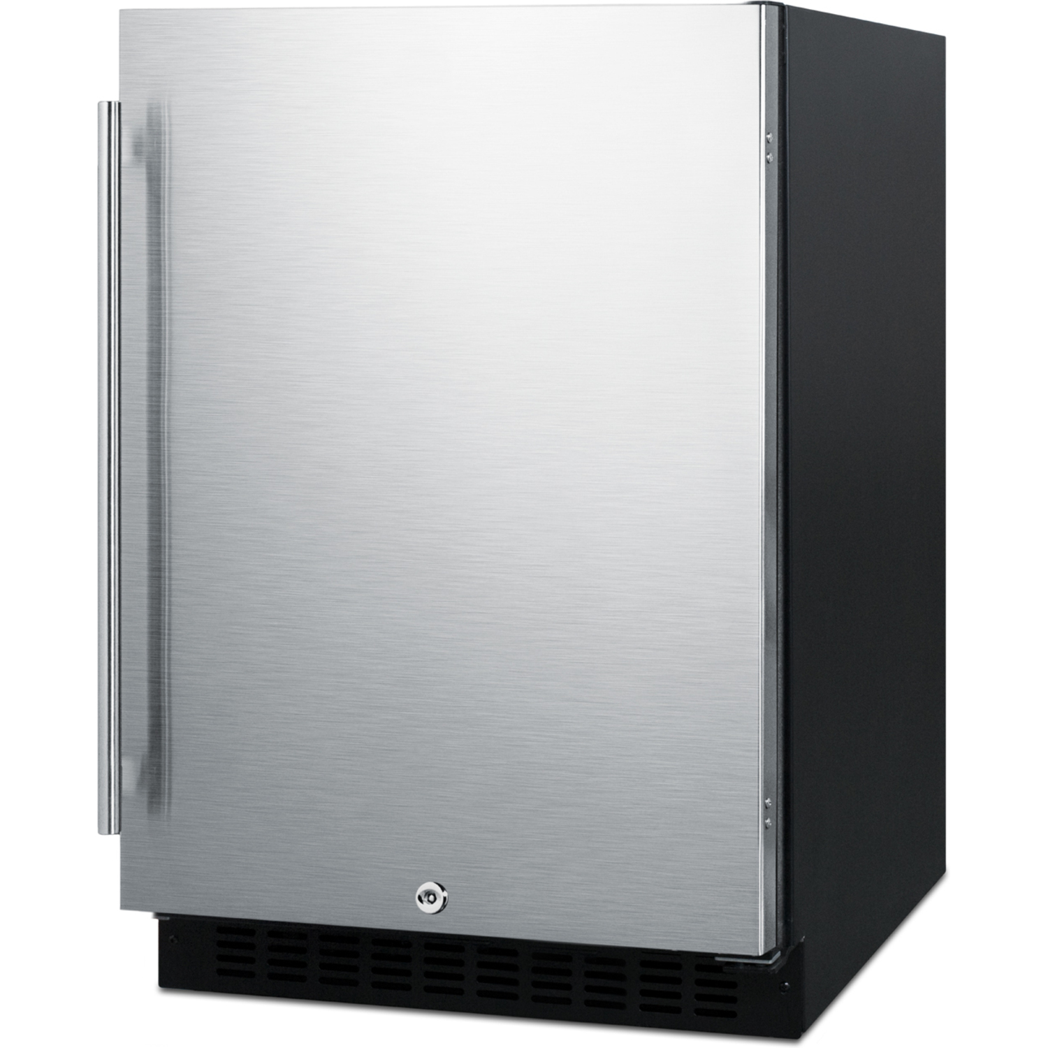 Sized with a convenient 24" footprint, the AL54 is just 32" high to fit under lower counters complying with ADA guidelines for accessibility. The fully finished black cabinet allows freestanding use, while the front-breathing system also allows this unit to be built-in with minimum clearance. The reversible stainless steel door includes a pro style handle and a factory installed lock for added safety. This unit has a flush back for easy cleaning and a right angle cord.