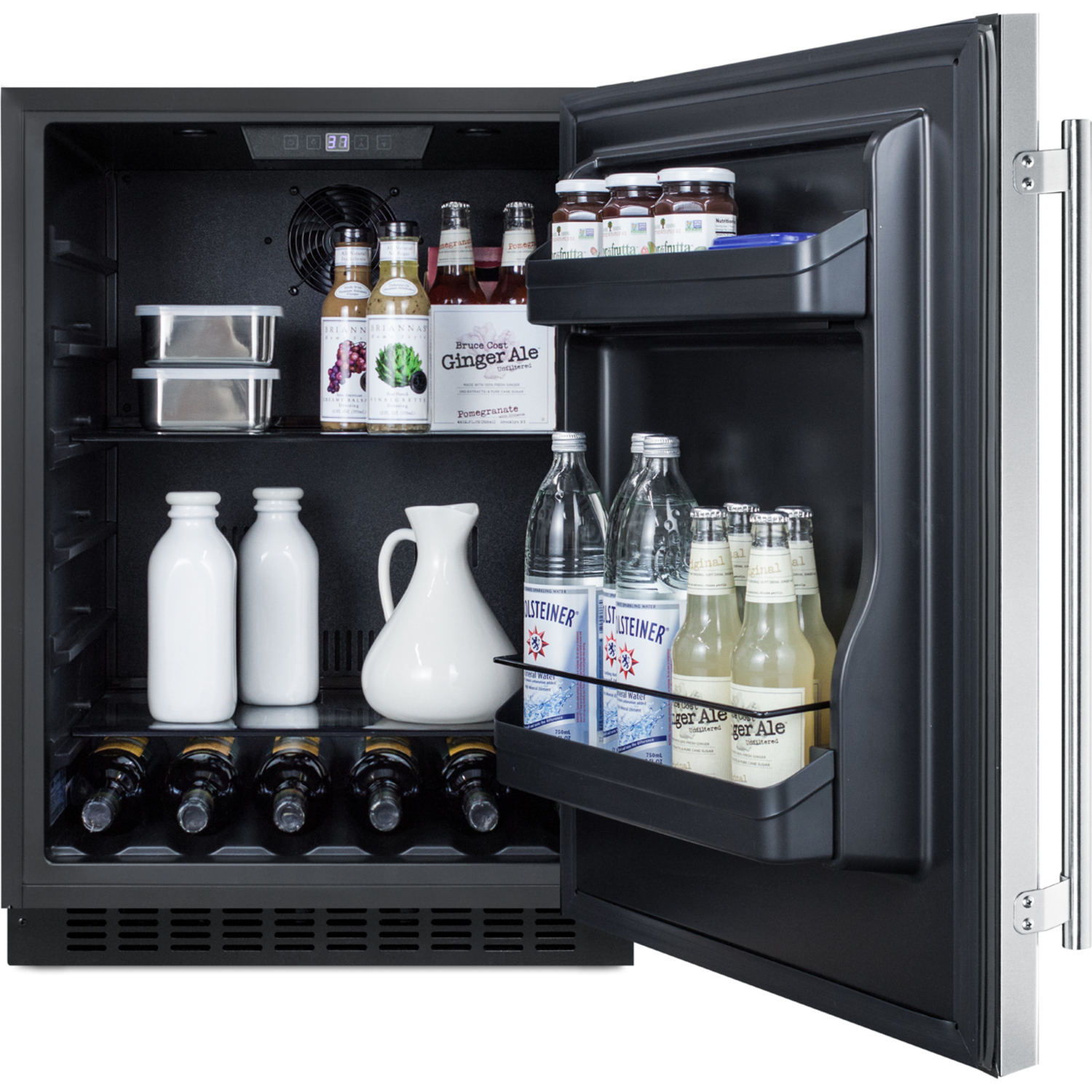 Bottles: 0Defrost Type: Frost-FreeDoor: Stainless SteelCabinet: BlackUS Electrical Safety: ETLCanadian Electrical Safety: ETL-CSanitation: ETL-SVoltage/Frequency: 115 V AC/60 HzParts & Labor Warranty: 1 YearCompressor Warranty: 5 Years