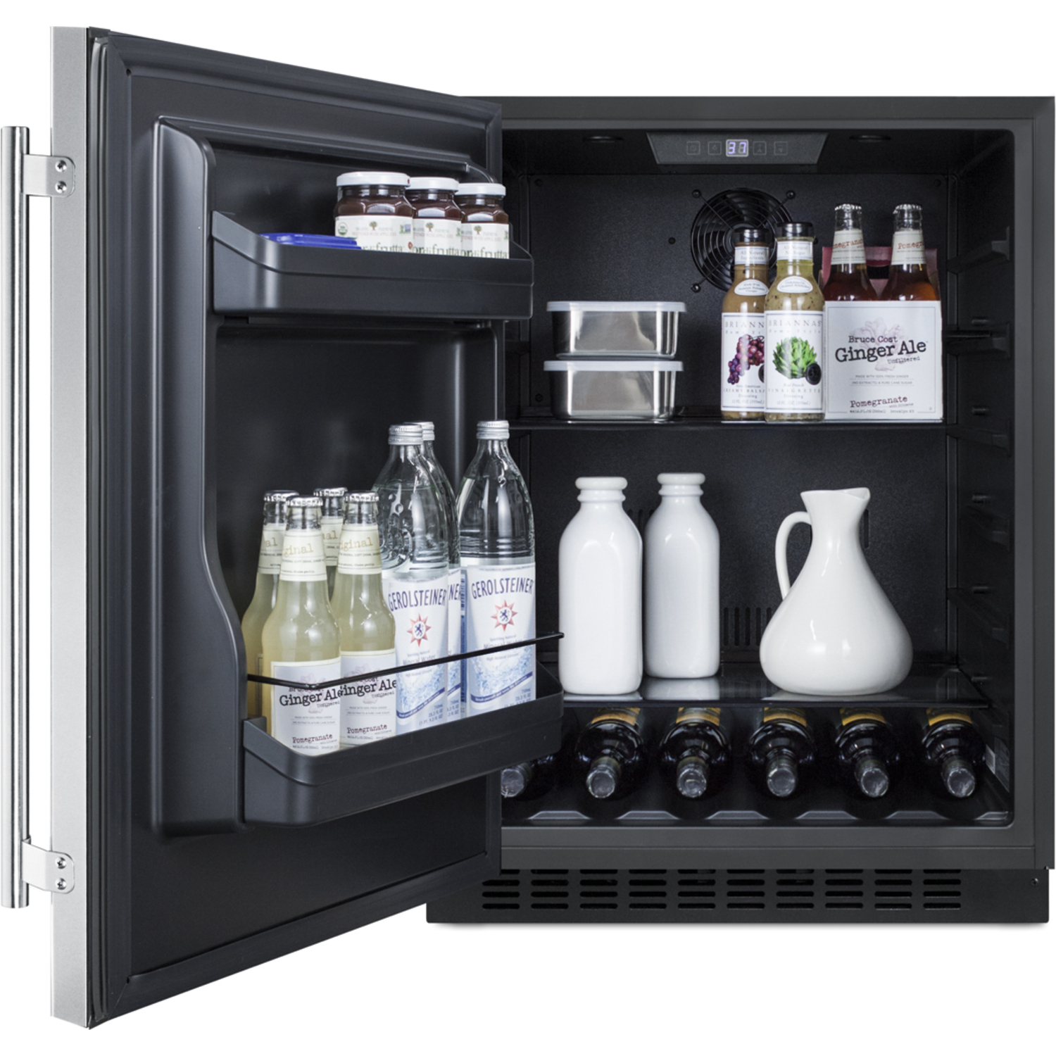 Bottles: 0Defrost Type: Frost-FreeDoor: Stainless SteelCabinet: BlackUS Electrical Safety: ETLCanadian Electrical Safety: ETL-CSanitation: ETL-SVoltage/Frequency: 115 V AC/60 HzParts & Labor Warranty: 1 YearCompressor Warranty: 5 Years