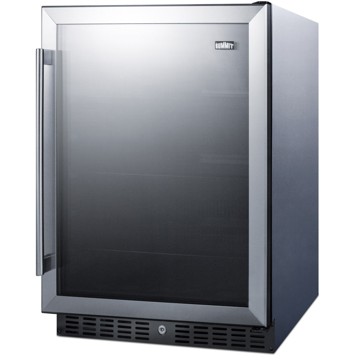 Sized with a convenient 24" footprint, the AL57GCSS is just 32" high to fit under lower counters complying with ADA guidelines for accessibility. The wrapped stainless steel cabinet allows freestanding use, while the front-breathing system also allows this unit to be built-in with minimum clearance. This unit has a user-reversible double pane tempered glass door with attractive stainless steel trim. A stainless steel handle completes the look and a factory installed lock in the kickplate offers additional security. The flush back design helps to make cleaning easier, while the right angle cord offers added space savings.