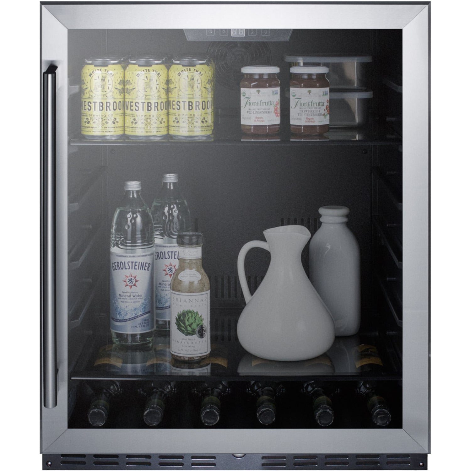 Bottles: 0Defrost Type: Frost-FreeDoor: GlassCabinet: Stainless SteelUS Electrical Safety: ETLCanadian Electrical Safety: ETL-CSanitation: ETL-SVoltage/Frequency: 115 V AC/60 HzParts & Labor Warranty: 1 YearCompressor Warranty: 5 Years