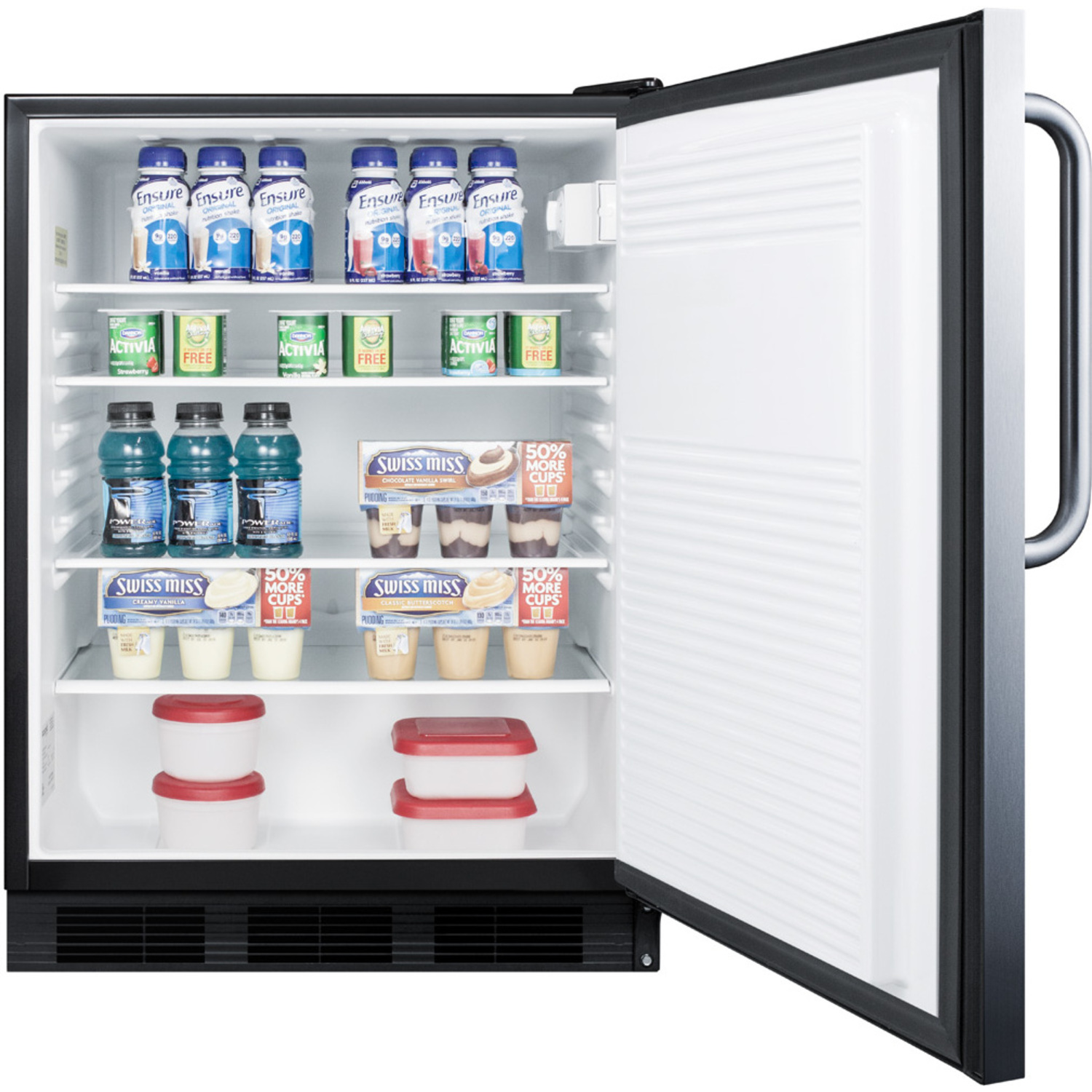 Accucold by Summit Appliance offers a wide range of all-refrigerators for general purpose storage. The AL750BI Series features 24" wide all-refrigerators designed for built-in installation under lower ADA compliant counters.