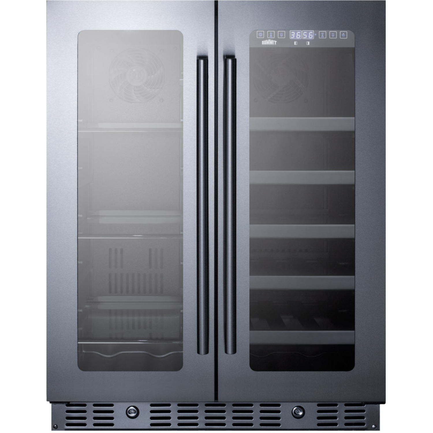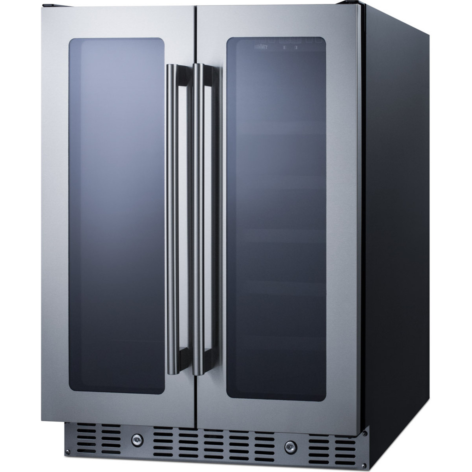 Sized with a convenient 24" footprint, the ALFD24WBV is 32" high, allowing it to fit under lower ADA compliant counters. Adjustable leveling legs let you raise the height up to 33.5" for added versatility. The front-breathing system allows built-in installation, while the fully finished black cabinet also allows freestanding use. This model has a French door swing, with two double pane tempered glass doors in a seamless stainless steel trim. Each door includes a front lock and pro style handle in brushed stainless steel.