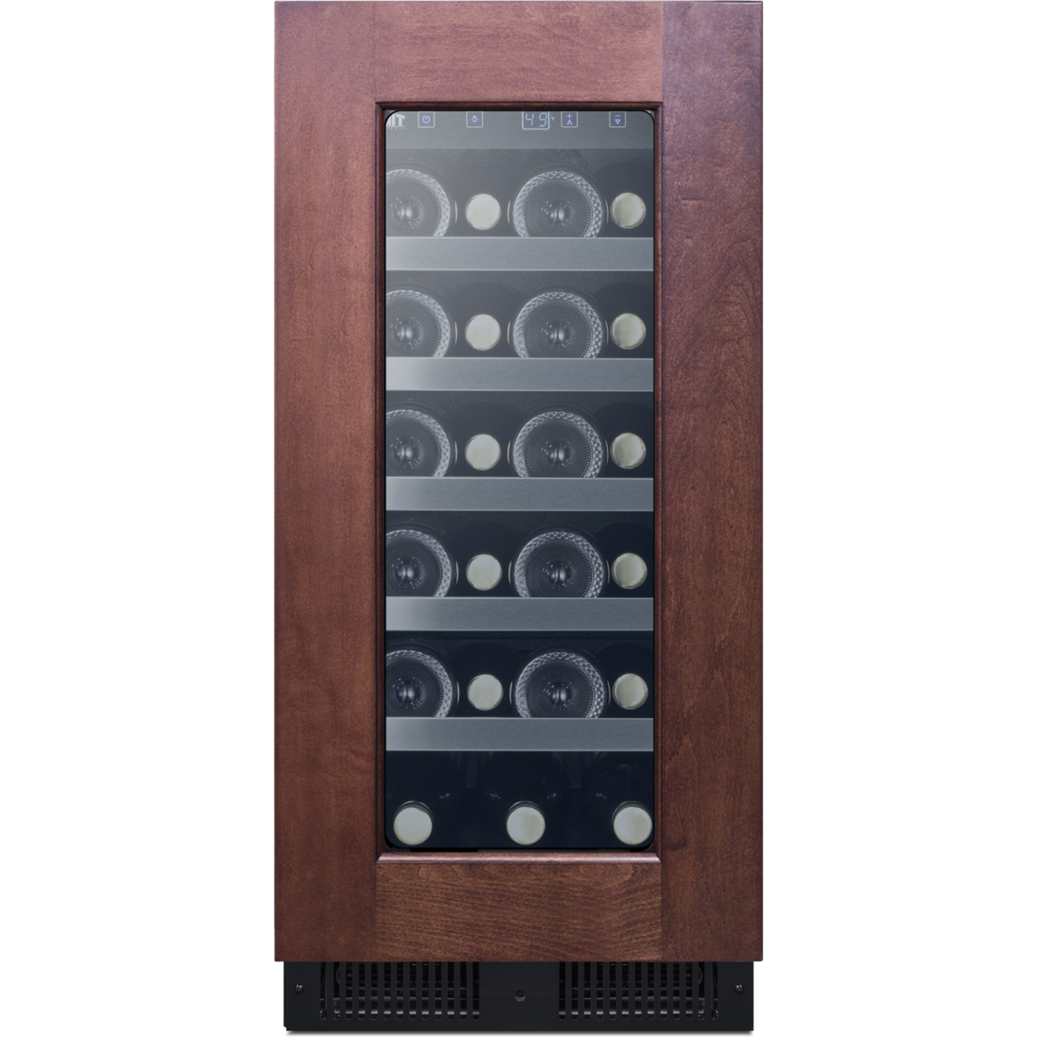 Five wooden shelves let you store up to 23 bottles of your favorite wine. The shelves are specially designed to store either standard Bordeaux style or wider Burgundy style bottles. Recessed LED lighting offers an attractive and energy efficient presentation for your collection. This model utilizes automatic defrost for easy maintenance and includes an internal fan to ensure more even temperature distribution. An audible alarm sounds if the door has been left open for over one minute, or if the temperature has risen out of the recommended storage range. This unit is also equipped with Sabbath mode to allow users the option of disabling certain electrical functions during periods of religious observance.