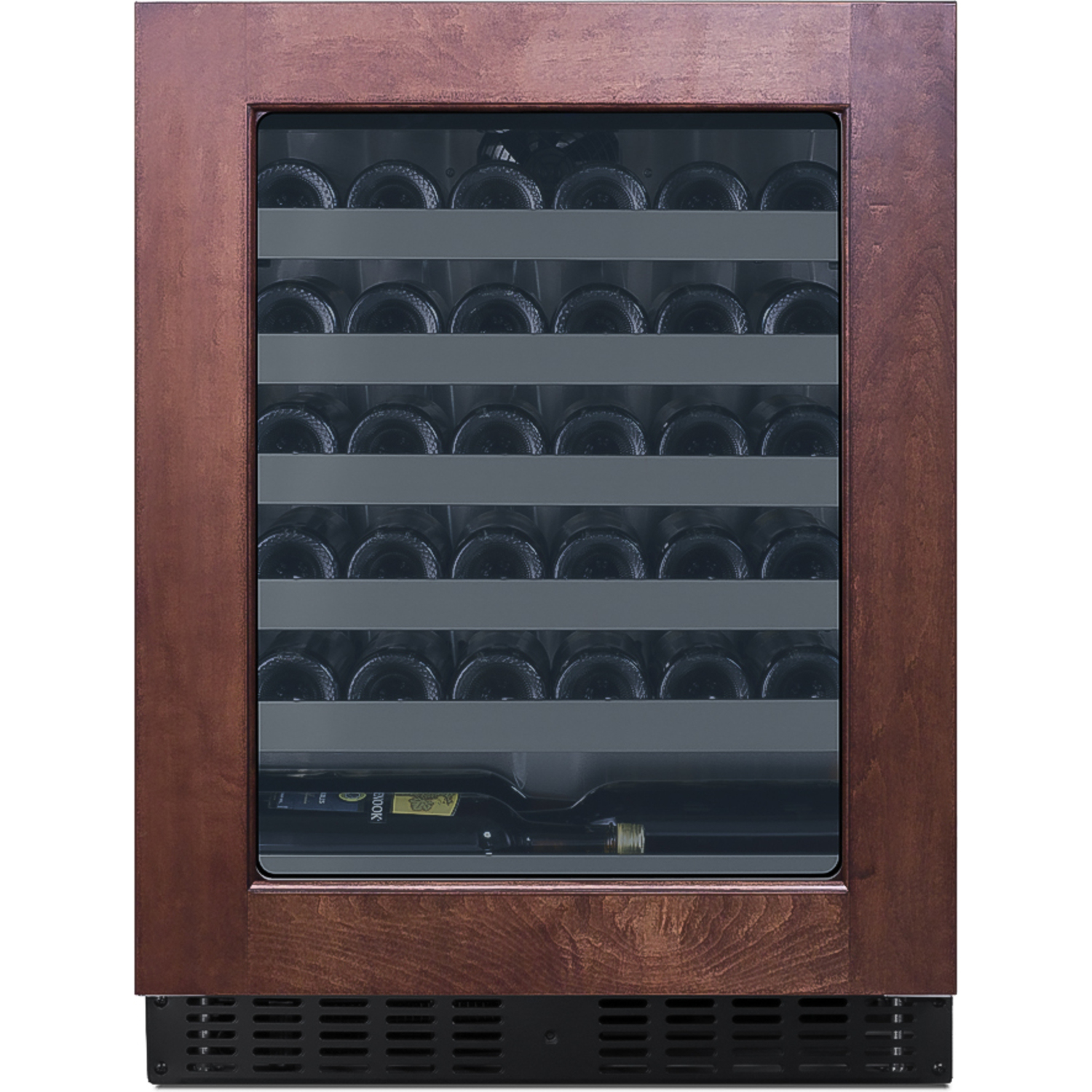 NOTE: The interior can store up to 33 Bordeaux-style bottles. Due to the shallow depth of this unit, we recommend loading the bottles with the corks facing the rear for a better fit. Wider Burgundy bottles will also fit on most shelves, but as these may vary more in size, loading capacity will ultimately depend on your specific bottle design. You may also remove shelves to accommodate thicker bottles, such as champagne and sparkling wine. The lower shelf is designed to hold Bordeaux-style bottles horizontally. Please use care when loading and unloading this section. Nominal Height: 32