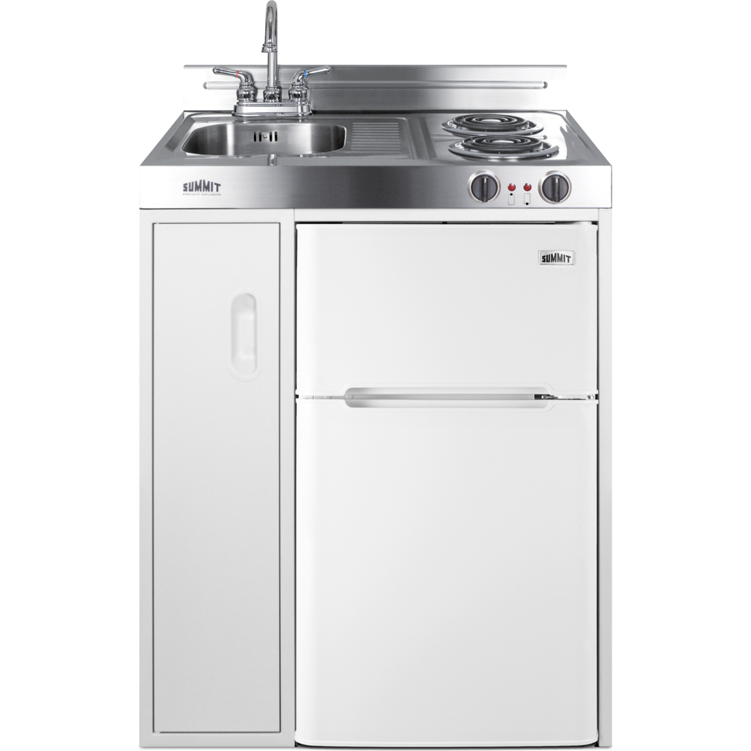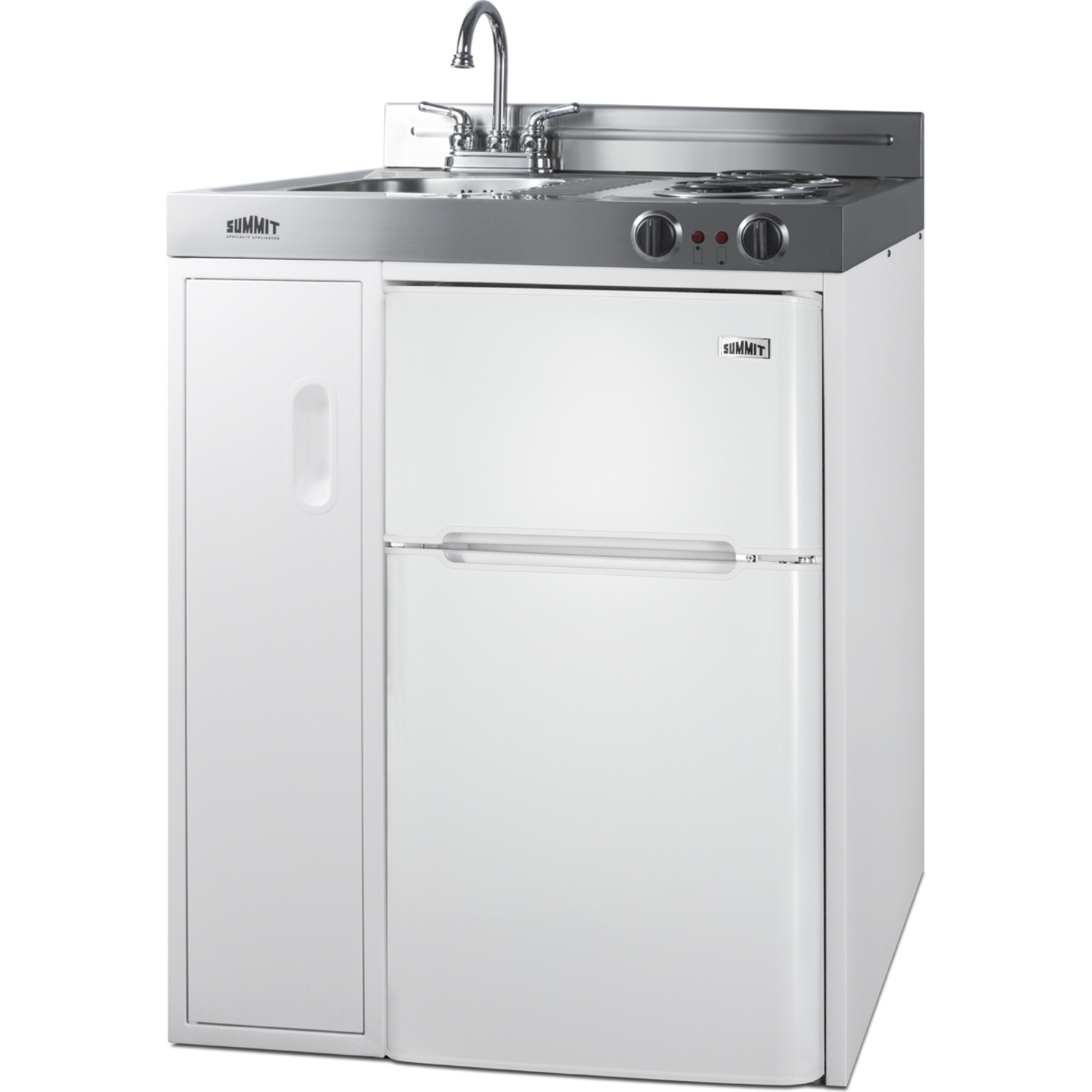 Summit brings true convenience to smaller spaces with all-in-one combination kitchenettes. Available from 30" to 72" wide, these units come fully featured with everything you need for the home foodservice experience, including a 2-burner cooktop, sink, storage cabinet, and refrigerator with a freezer compartment.