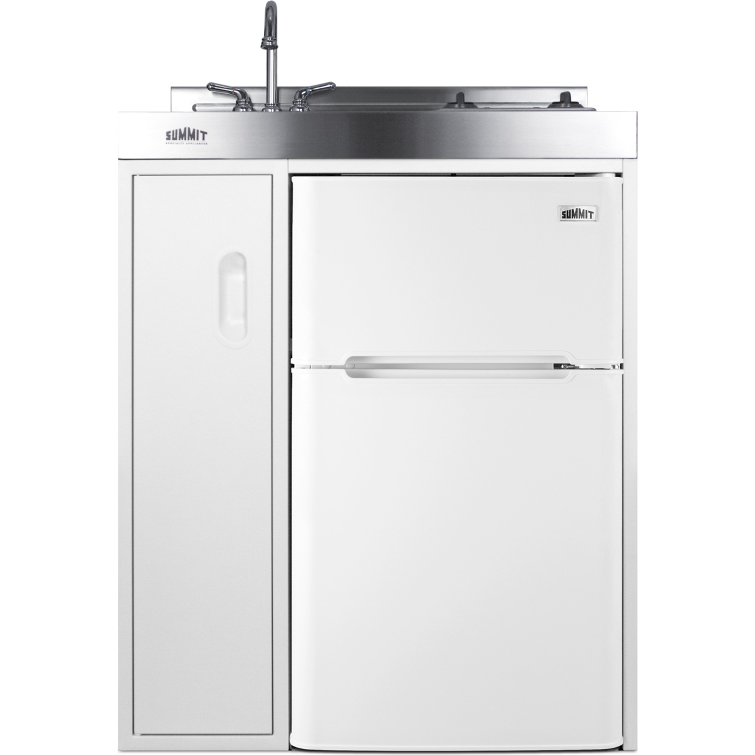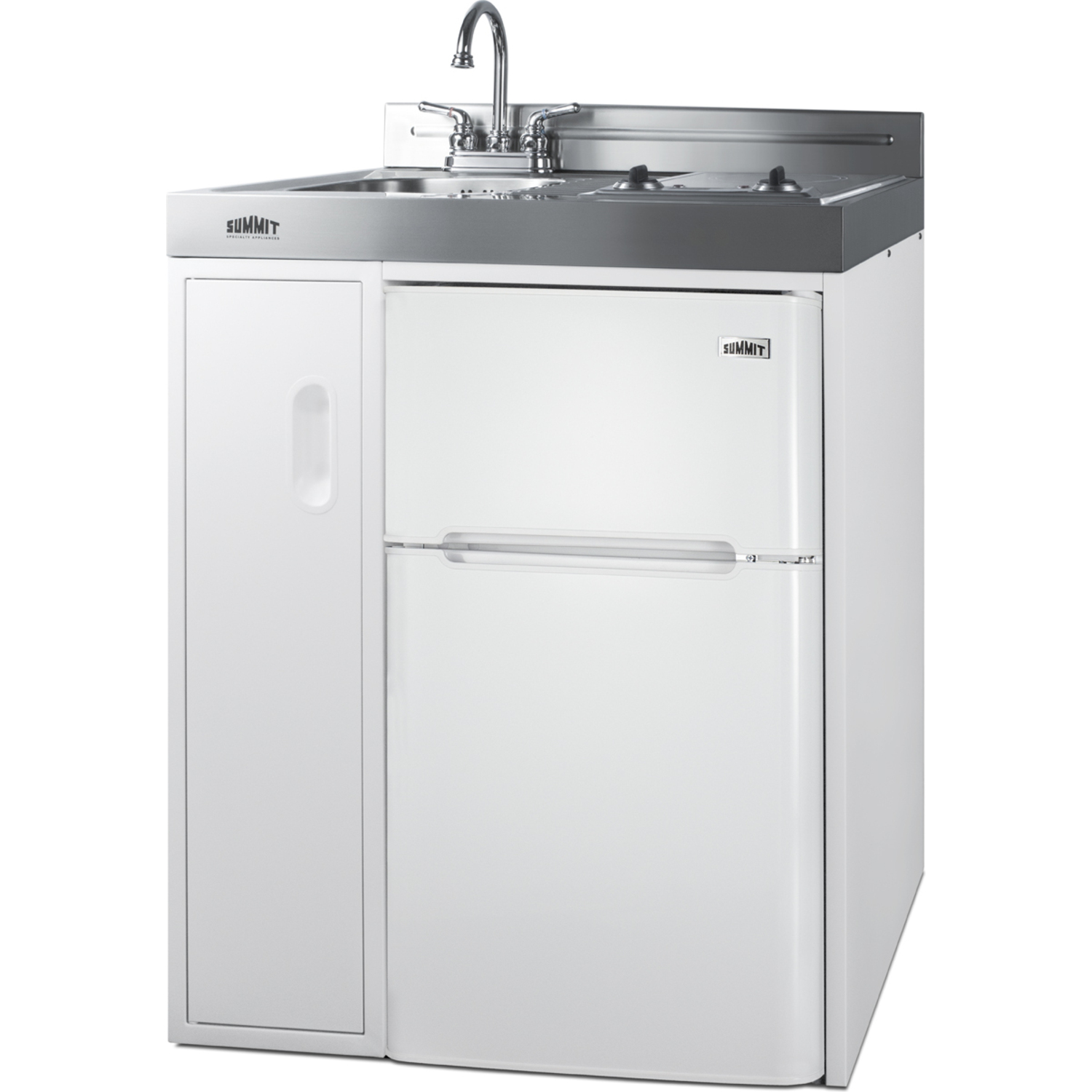 Summit brings true convenience to smaller spaces with all-in-one combination kitchenettes. Available in a variety of sizes and finishes, these units come fully featured with everything you need for the home foodservice experience, including a 2-burner coil cooktop, sink, storage cabinet, and refrigerator with a freezer compartment.