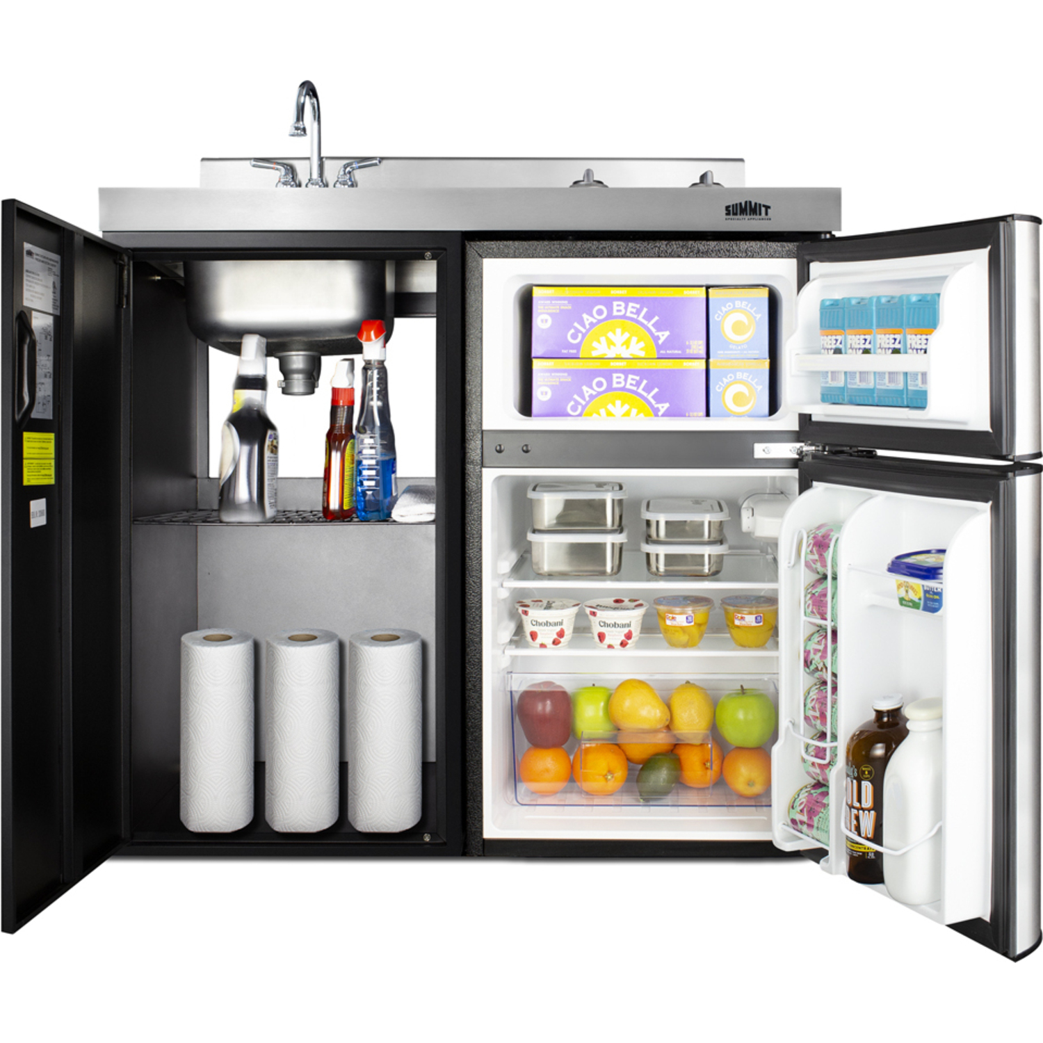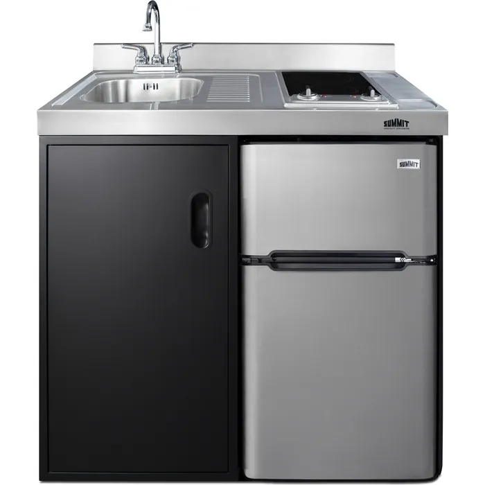 Summit brings true convenience to smaller spaces with all-in-one combination kitchenettes. Available in a variety of sizes and finishes, these units come fully featured with everything you need for the home foodservice experience, including a 2-burner smooth-top cooktop, sink, storage cabinet, and refrigerator with a freezer compartment.