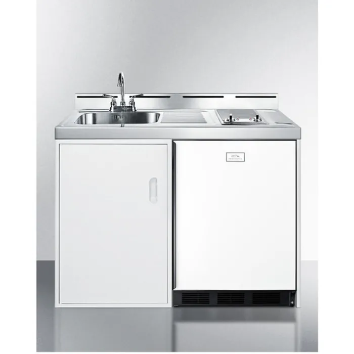 Summit brings true convenience to smaller spaces with all-in-one combination kitchenettes. Available in a variety of sizes and finishes, these units come fully featured with everything you need for the home foodservice experience, including a 2-burner coil cooktop, sink, storage cabinet, and refrigerator with a freezer compartment.