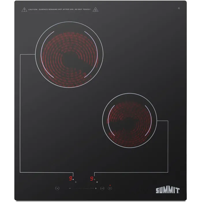 Summit 18 inch Wide 220V 2-Burner Radiant Cooktop, 761101085012, CR2B228T