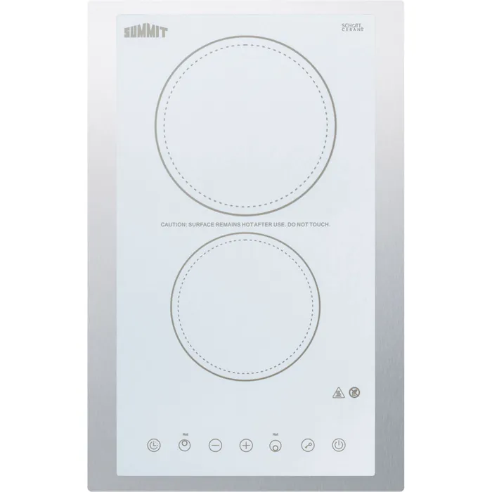 Summit 230v 2-burner White Ceramic Glass Cooktop With Digital Controls And Ss Collar For 15 inch Openings CR2B23T4WTK15
