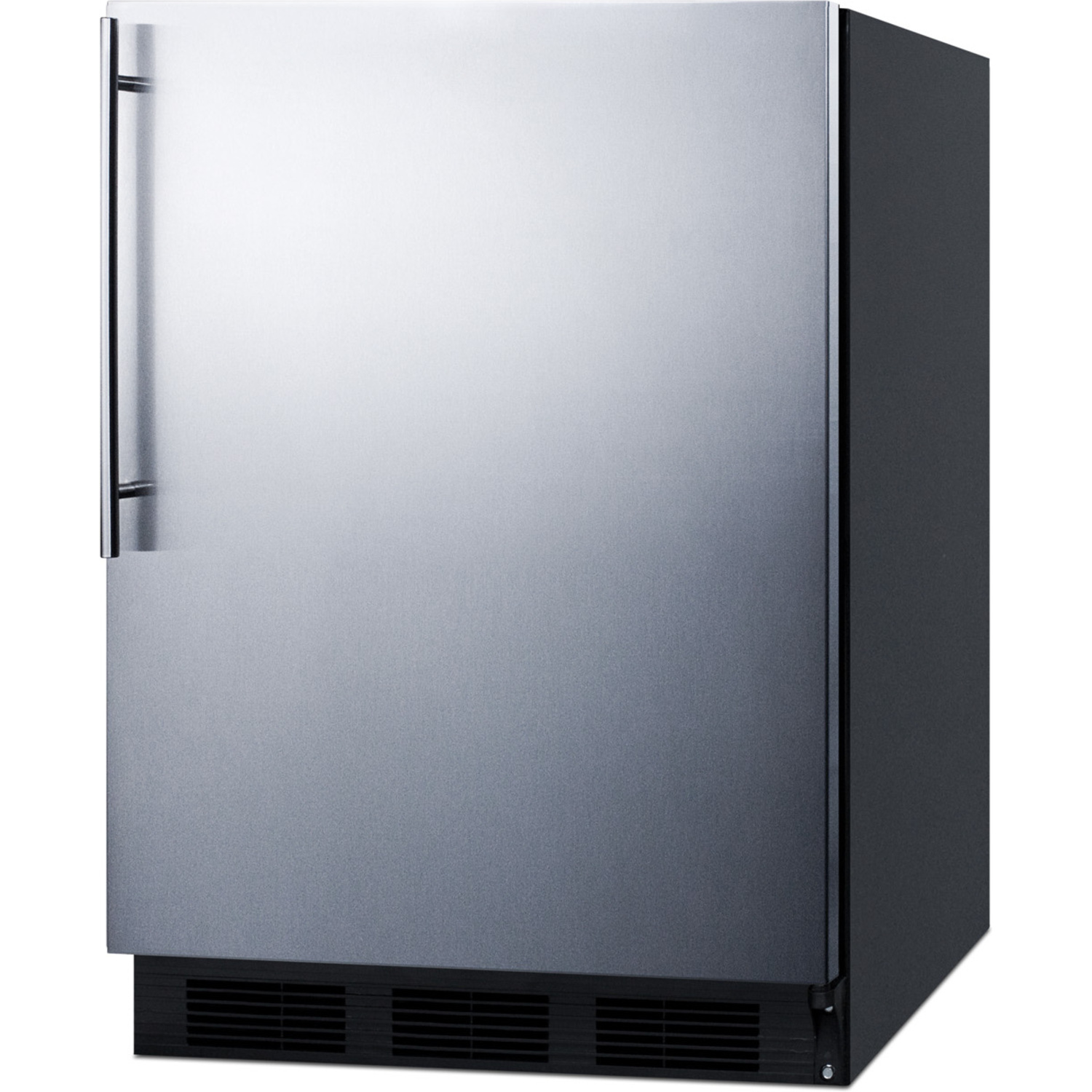 Sized with a 24” footprint, CT663BKSSHV refrigerator-freezer offers a generous 5.1 cu.ft. storage capacity, a larger interior than many units in this size class. This model features a black cabinet and a stainless steel wrapped door. A vertically mounted stainless steel handle with a thin 14mm diameter completes the professional look.