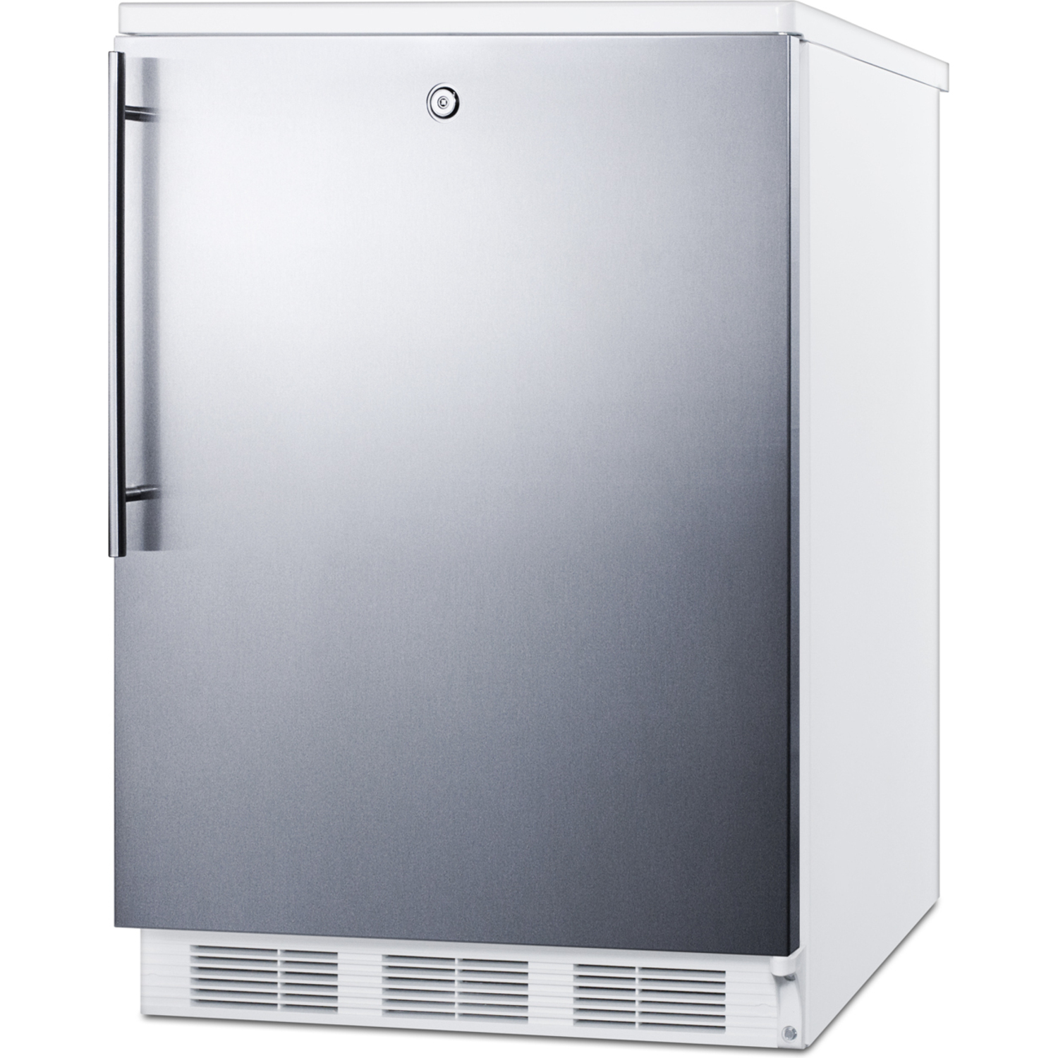 At 32" high, the CT66LWSSHVADA is designed for freestanding use in ADA compliant facilities. The 24" footprint offers overly 5 cu.ft. of storage capacity. This model features a white cabinet and a stainless steel wrapped door with a factory installed lock. A sleek handle completes the look.