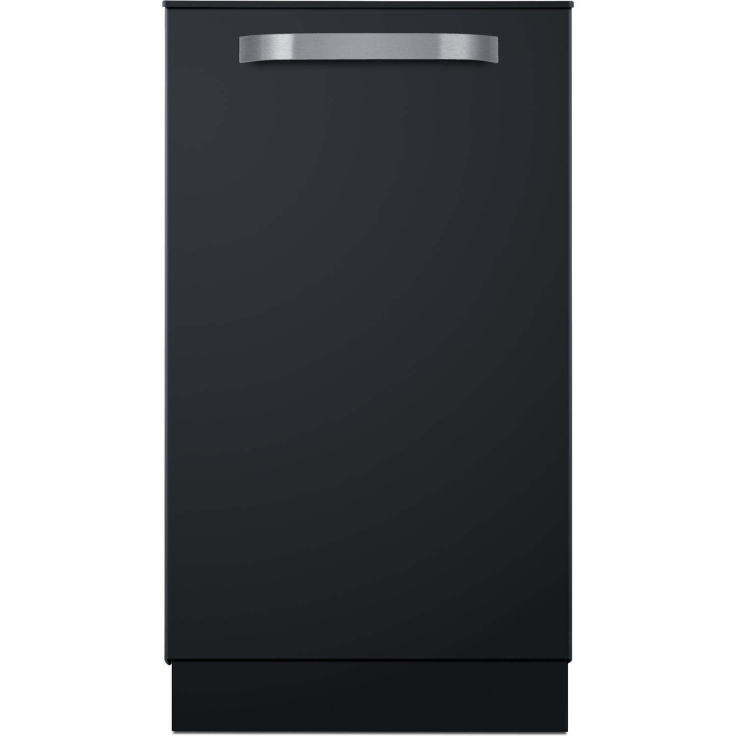 Model DW184BADA is an 18" wide dishwasher sized at 32.25" high for an easy fit under lower ADA compliant counters. The leveling legs allow you to raise the height up to 34". We include an extra kickplate that covers the front for a cleaner look and to help prevent dirt from going under the unit. This model features a modern black door with a curved handle in brushed stainless steel, bringing a modern look to the kitchen. The controls are located on top of the door, making it easier to create a more seamless look under your counters.