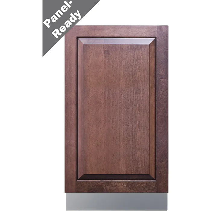 Model DW186NTADA is an 18" wide dishwasher sized at 32.25" high for an easy fit under lower ADA compliant counters. The leveling legs allow you to raise the height up to 34". We include an extra kickplate that covers the front for a cleaner look and to help prevent dirt from going under the unit. This is a fully integrated dishwasher with an unfinished door designed to accept user-provided panels to create a seamless look that blends into your cabinetry. Users also provide their own handle. The control panel is located on top of the door to help ensure a seamless look with your kitchen.