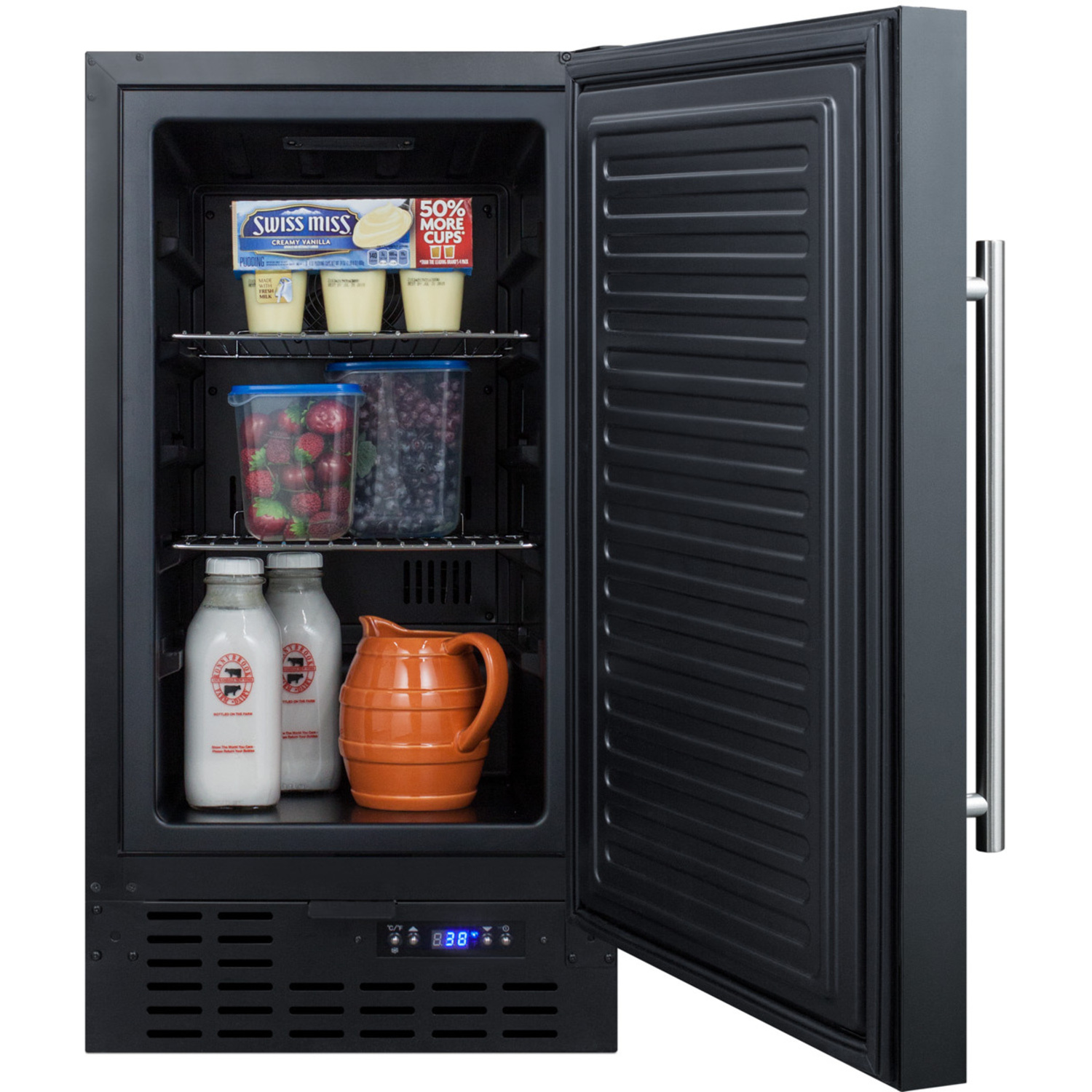 Bottles: 0Defrost Type: AutomaticDoor: BlackCabinet: BlackUS Electrical Safety: ETLCanadian Electrical Safety: ETL-CSanitation: ETL-SVoltage/Frequency: 115 V AC/60 HzParts & Labor Warranty: 1 YearCompressor Warranty: 5 Years