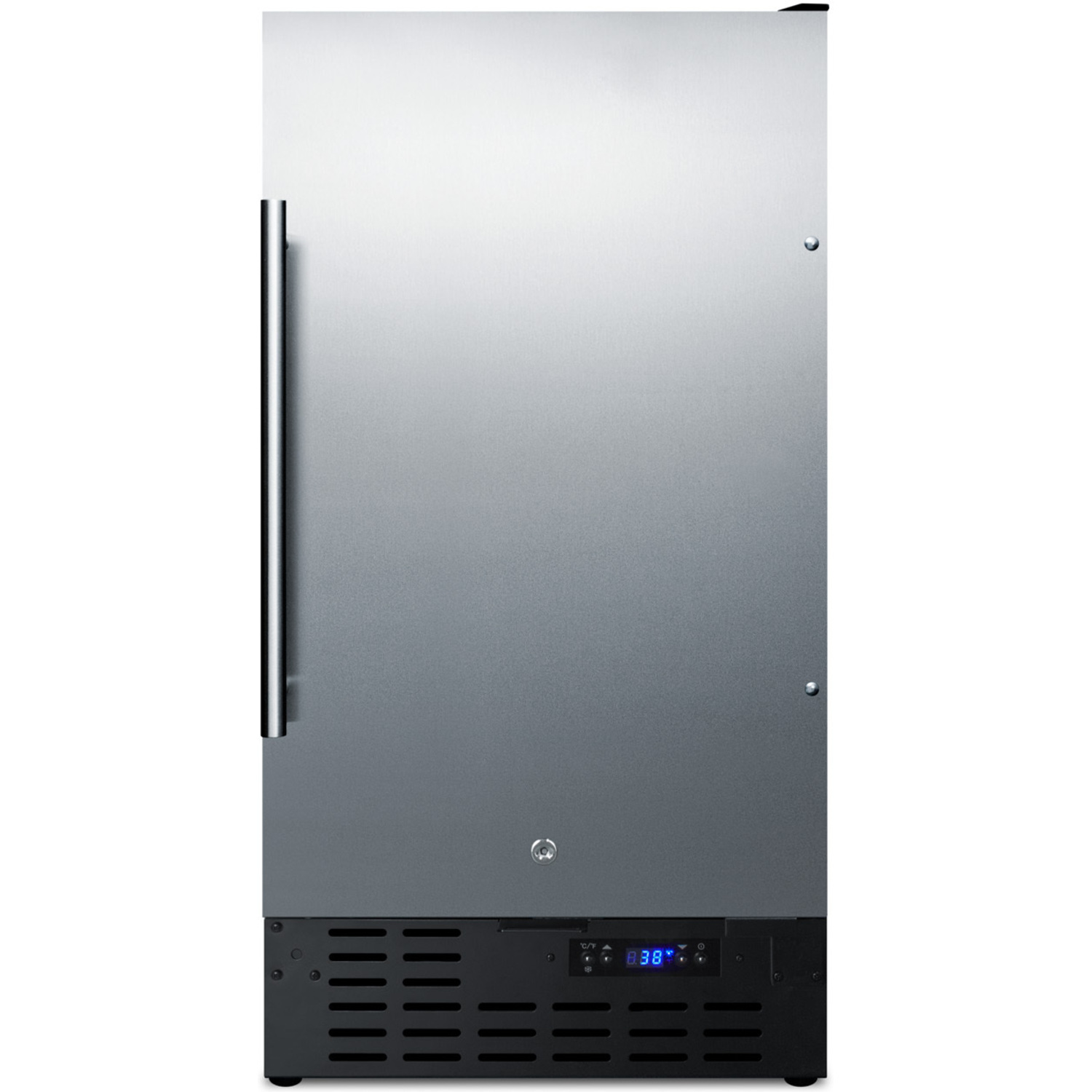 Inside, the FF1843BSS utilizes automatic defrost operation for low maintenance use. Four adjustable chrome shelves accommodate a variety of sizes and LED lighting offers an efficient interior view. This unit includes a digital thermostat for optimum temperature management.