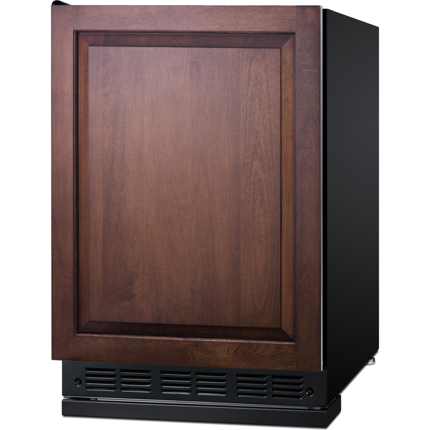 Sized with a 24" footprint, model FF6BK2SSRSIFLHD is an ENERGY STAR certified all-refrigerator designed for recessed installation or freestanding use in residential kitchens. The door features an integrated stainless steel exterior frame designed to accept overlay panels, allowing you to create a custom look that can seamlessly blend into your kitchen (panel size: 23 5/16" W x 28 1/4" H and at least 3/4" thick). Users provide their own handle to complete the look. This unit has a jet black exterior cabinet comes with a left hand door swing. It runs quietly at less than 33 dB. Adjustable legs allow you to set the height between 33 1/2" and 34 1/2" for the perfect fit. We include a black steel leg shield for optional use if you find there is too much space between the front and floor when the unit is set at its taller height.