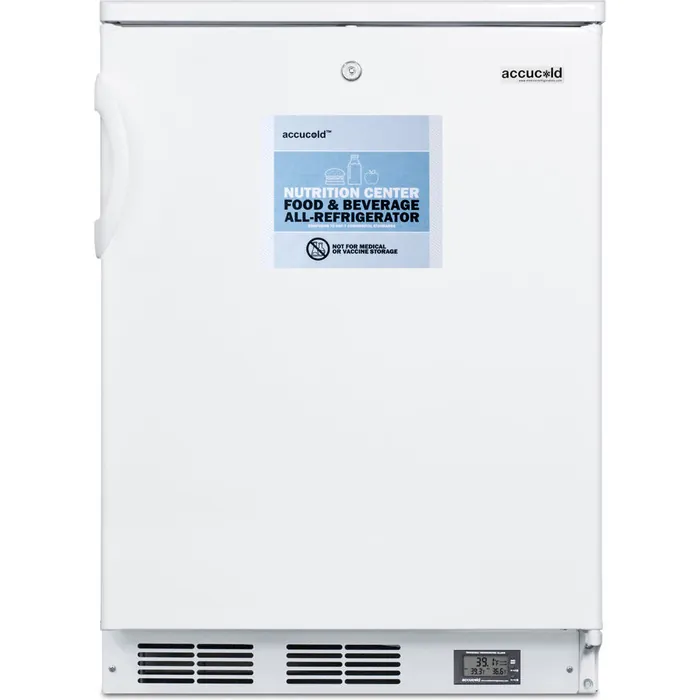 Designed specifically for institutional food and beverage storage, all Accucold's Nutrition Centers are commercially approved to NSF standards and comply with most JCAHO recommendations for safe storage. Additional sizes and variations are available. For the same unit sized for ADA compliant counters, see the FF6LWBI7NZADA.