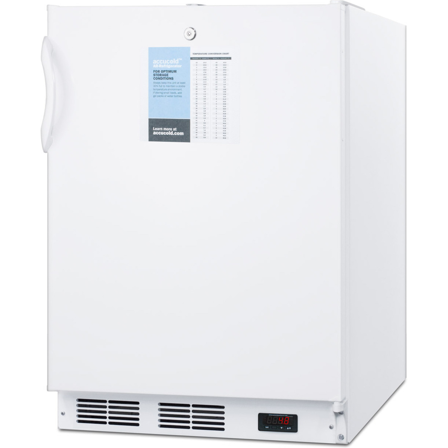 Sized at 32" high and just under 24" wide, the FF7LWPROADA is an all-refrigerator designed for freestanding use in settings following ADA compliant guidelines. Made in Europe, it comes in a white finish with a fully finished cabinet with a user-reversible door. A hospital grade cord with a 'green dot' plug offers added safety in high traffic areas and factory-installed lock is located towards the top of the unit for convenient security. This unit includes a digital thermostat for optimum temperature precision located in the kickplate.