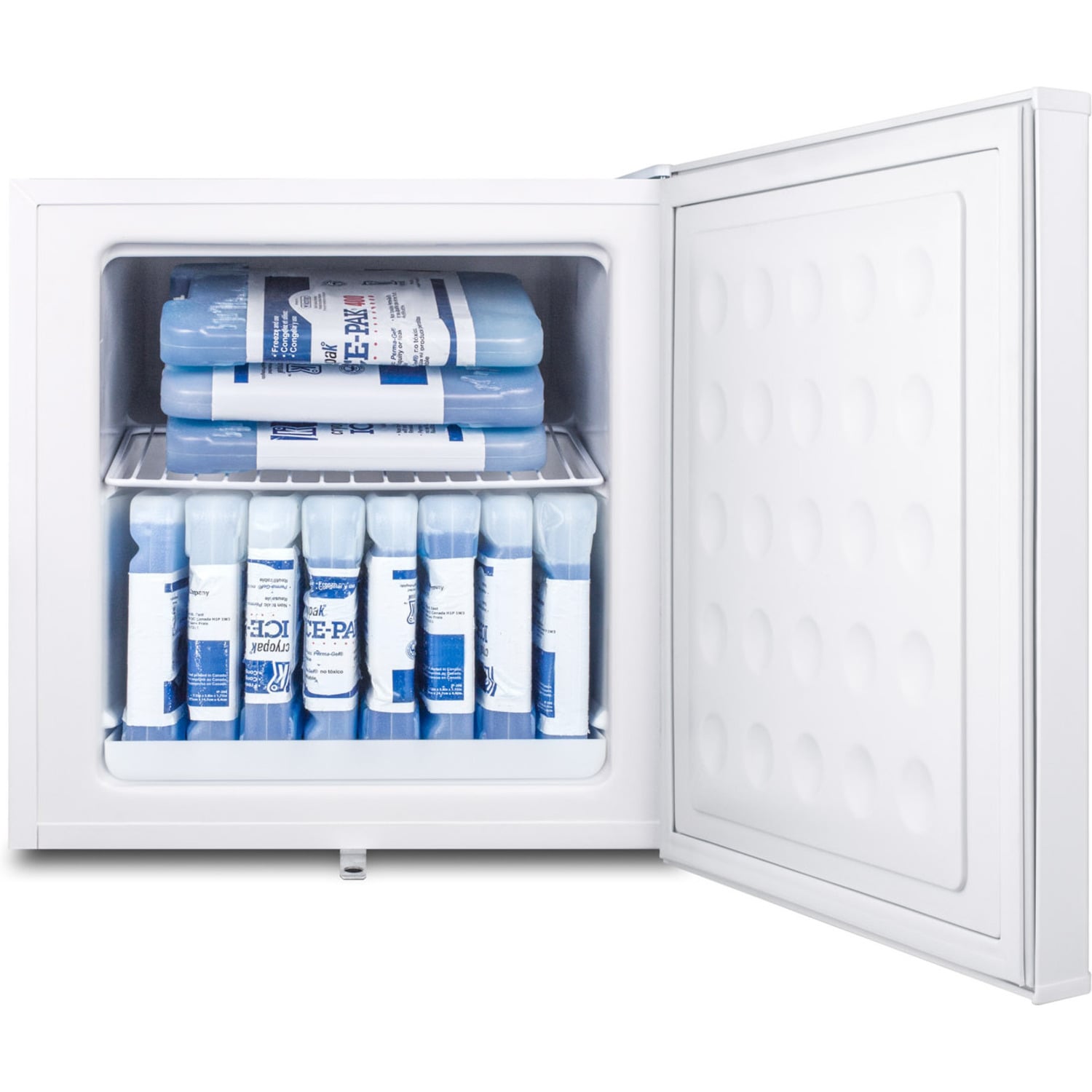 Inside, the FS24LPLUS2 offers a 1.4 cu.ft. capacity. Manual defrost utilizes static cooling to help improve temperature stability. A removable wire shelf offers storage convenience and the flat door liner conforms with the CDC's guidelines for vaccine storage. The seamless interior liner helps to simplify cleanup.