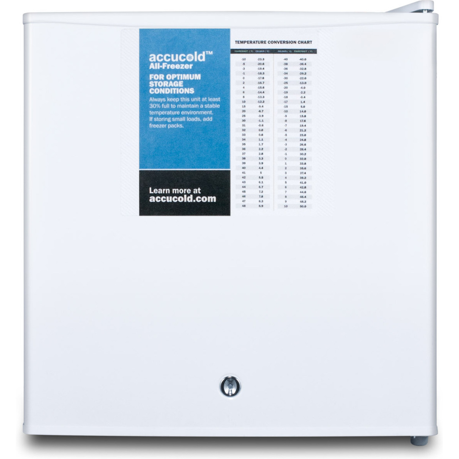 The FS24LPRO is a compact all-freezer for use in hospitals, doctors' offices, and other facilities with specific temperature needs. We include a factory-installed lock for keyed security. A hospital grade cord with a 'green dot' plug offers added safety in high traffic areas. This unit has a digital thermostat mounted on top of the cabinet to allow users to modify the temperature without opening the door.