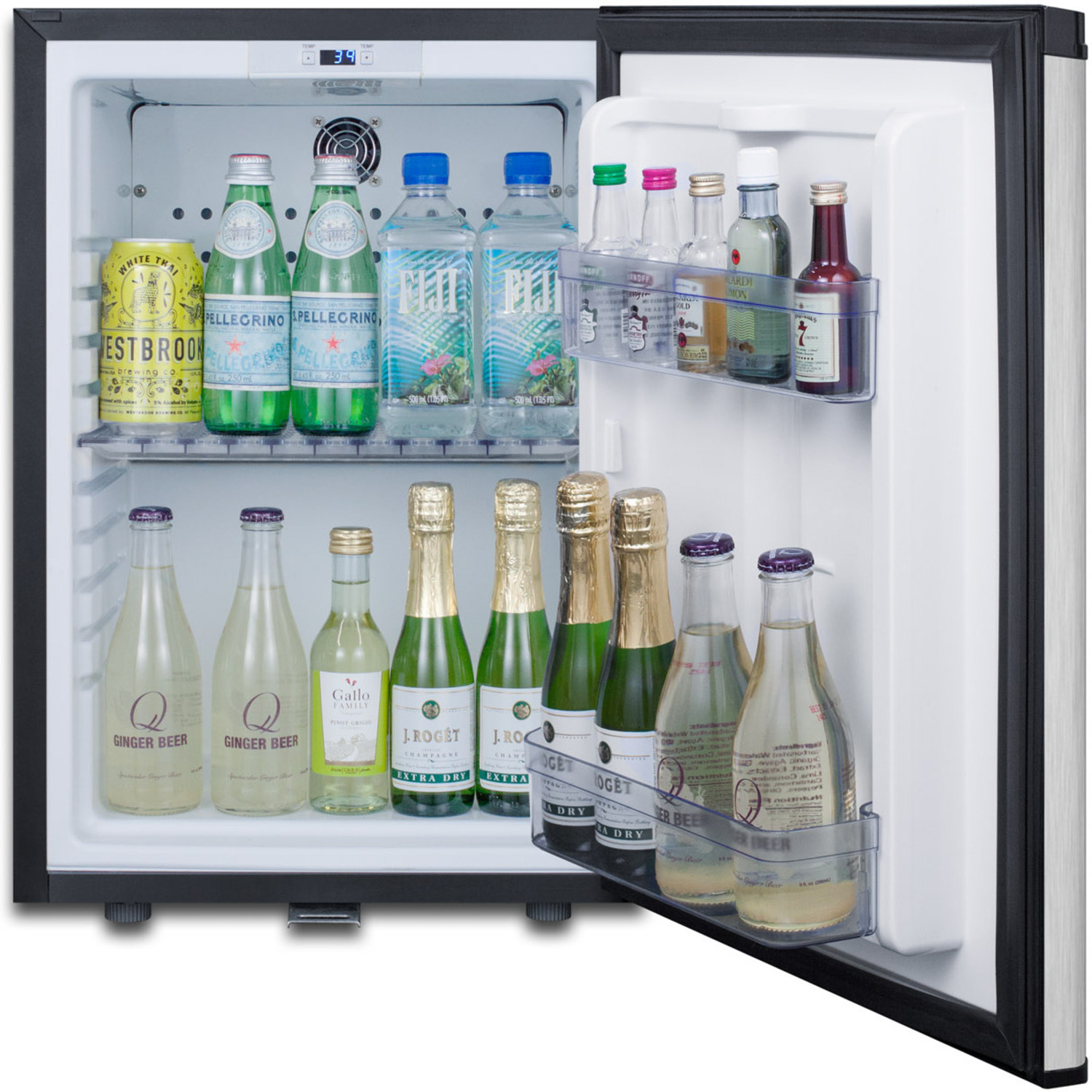Sized at under 16"es wide, the MB26SS is a compact minibar with a stainless steel door. Its fully finished black cabinet allows for freestanding use. The user-reversible door affords variation in unit placement and includes a factory-installed lock for added security. The digital controls with six temperature levels makes adjusting the temperature easy.