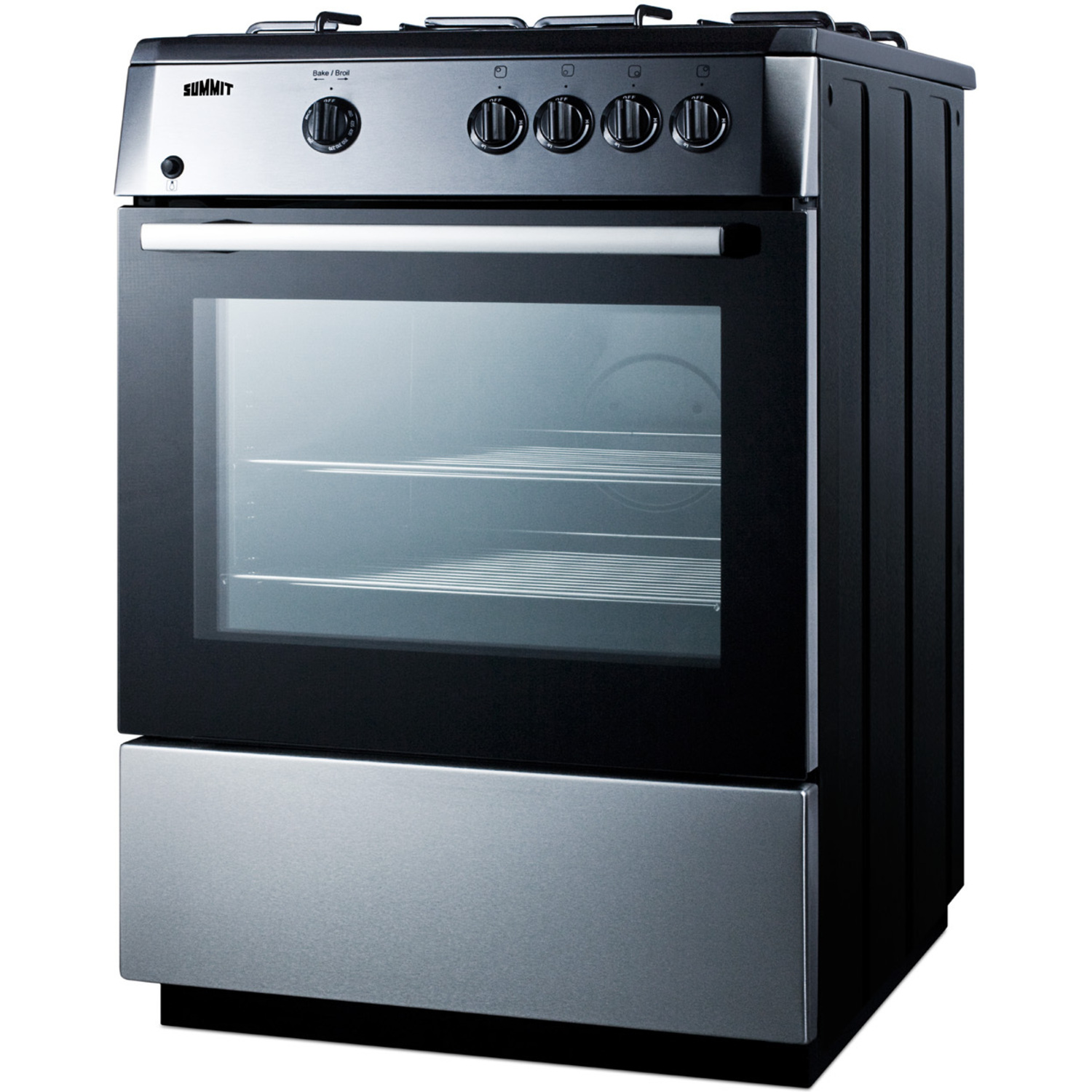 Summit PRO24G 24 inch Wide 'slide-in' Look Stainless Steel Gas Range With Sealed Burners, Waist-high Broiler