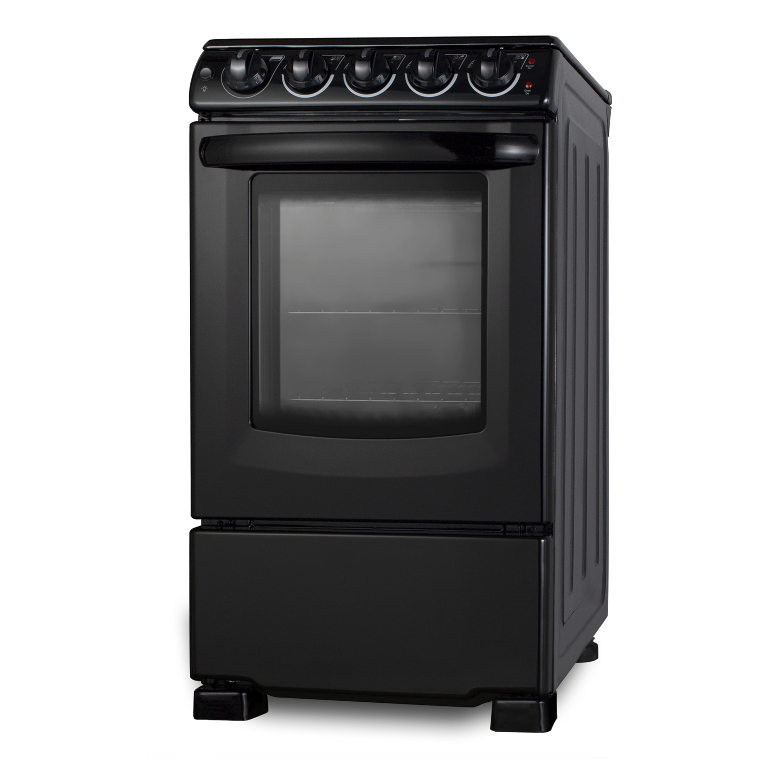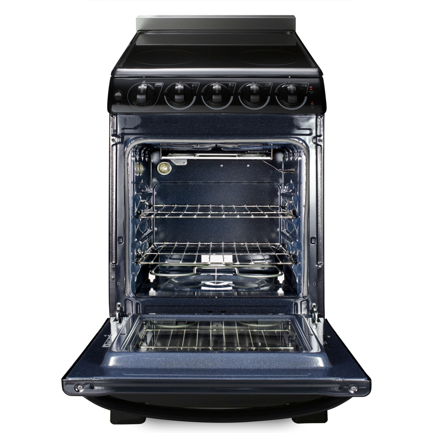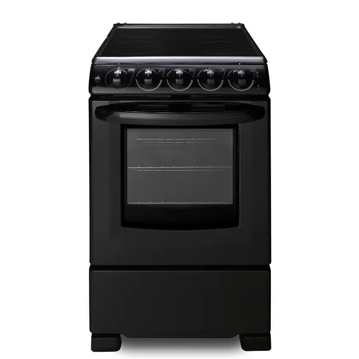 The smooth ceramic glass surface includes four 1200W 6 1/2" elements, with a hot surface indicator light for added safety. Inside, the REX2051BRT features a large 2.3 cu.ft. oven made from durable porcelain enamel. The waist-high broiler function is easy to use, with slide-out oven racks that can be adjusted in four different glide positions for the best fit. We include a small two-piece porcelain broiler tray with a grill cover. The large oven window and interior light make it easy to monitor your cooking.