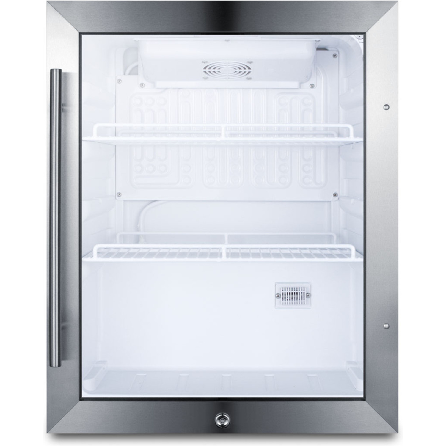 Inside, the SCR314L features LED lighting to provide an attractive display when the door is opened. Two adjustable wire shelves offer plenty of storage options, and the white interior finish helps to provide better visibility for stored products. This unit utilizes automatic defrost to reduce user maintenance. The sealed back offers added space savings and easier cleanup.