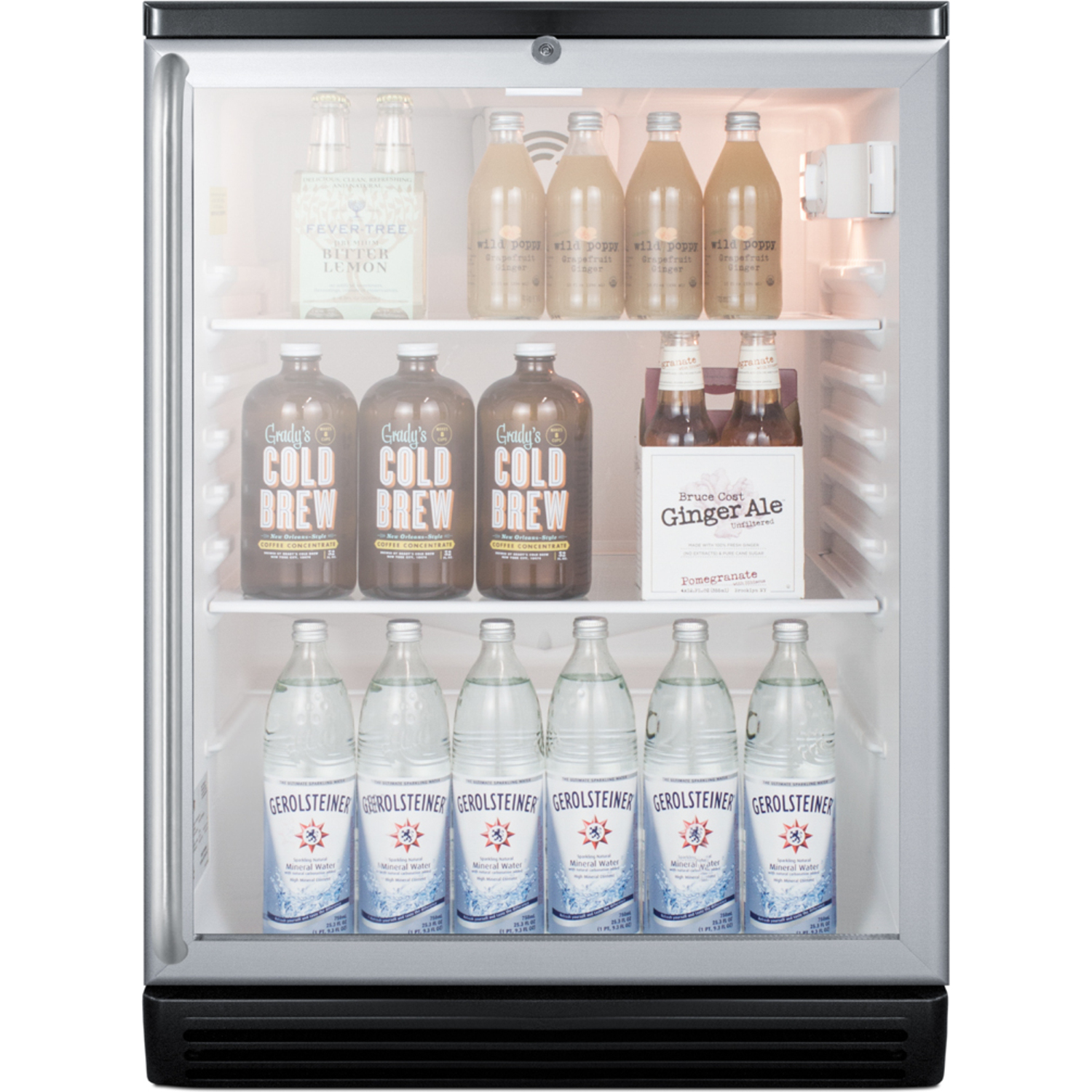 SUMMIT COMMERCIAL's SCR600BGLBI Series features 24" wide beverage refrigerators designed and manufactured in Europe for built-in undercounter installation in commercial settings.