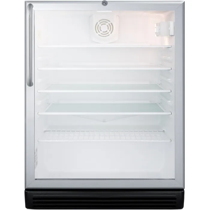 Inside, the SCR600BGLBITBADA includes four adjustable glass shelves for spill-proof storage and a half-sized wire shelf ideal for holding bottles in place. Automatic defrost ensures minimum user maintenance and a dial thermostat makes it simple to manage the temperature. This unit features an interior light operated with an ON/OFF rocker switch and a white interior finish to ensure optimum product visibility. Our unique "hidden" evaporator is located in the rear wall to help protect the unit's system and maximize shelf space. An internal fan helps to ensure the interior is more evenly cooled from top to bottom.