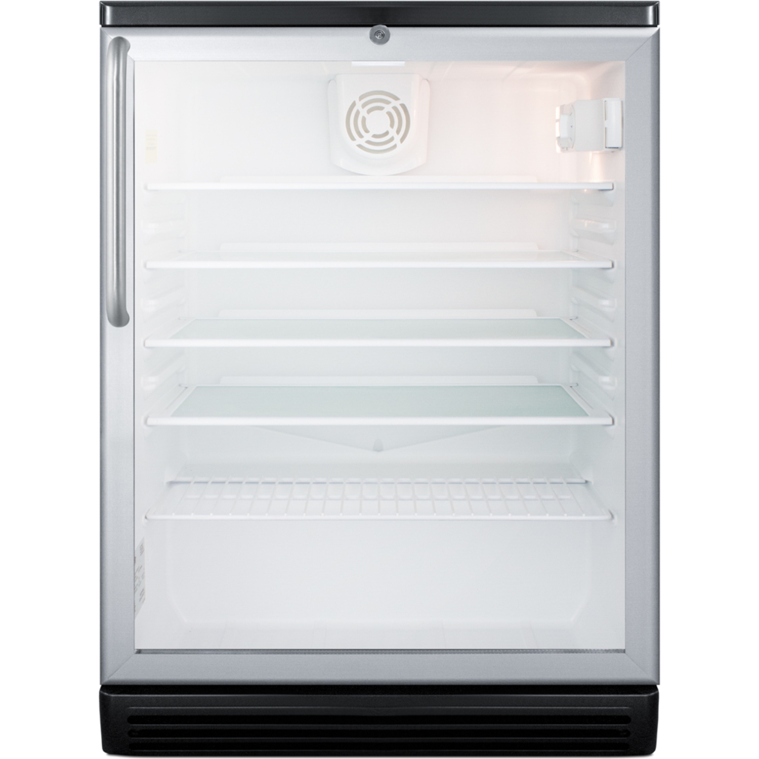 Inside, the SCR600BGLTB includes four adjustable glass shelves for spill-proof storage and a half-sized wire shelf ideal for holding bottles in place. Automatic defrost ensures minimum user maintenance and a dial thermostat makes it simple to manage the temperature. This unit features an interior light operated with an ON/OFF rocker switch and a white interior finish to ensure optimum product visibility. Our unique "hidden" evaporator is located in the rear wall to help protect the unit's system and maximize shelf space. An internal fan helps to ensure the interior is more evenly cooled from top to bottom.