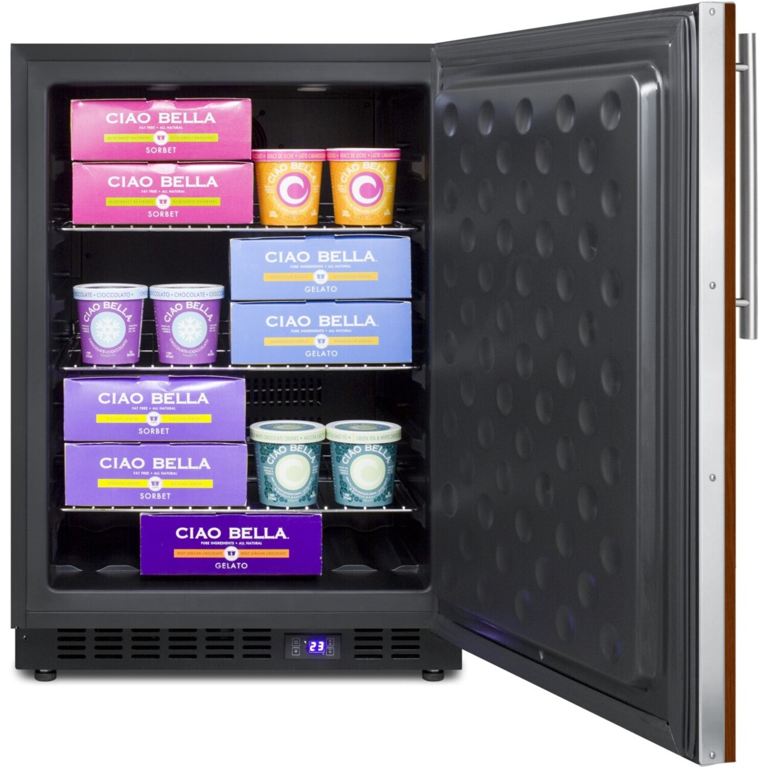 Designed for built-in or freestanding use, the SPFF51OSIFIM comes in an easy fitting 24" width with a fully finished black cabinet. The door includes an integrated stainless steel frame designed to accept full overlay panels, allowing you to seamlessly blend the freezer into your cabinet design. Users provide their own handle to finish the custom look. NOTE: If installing the unit outdoors, be sure to use a weatherproof panel and handle.
