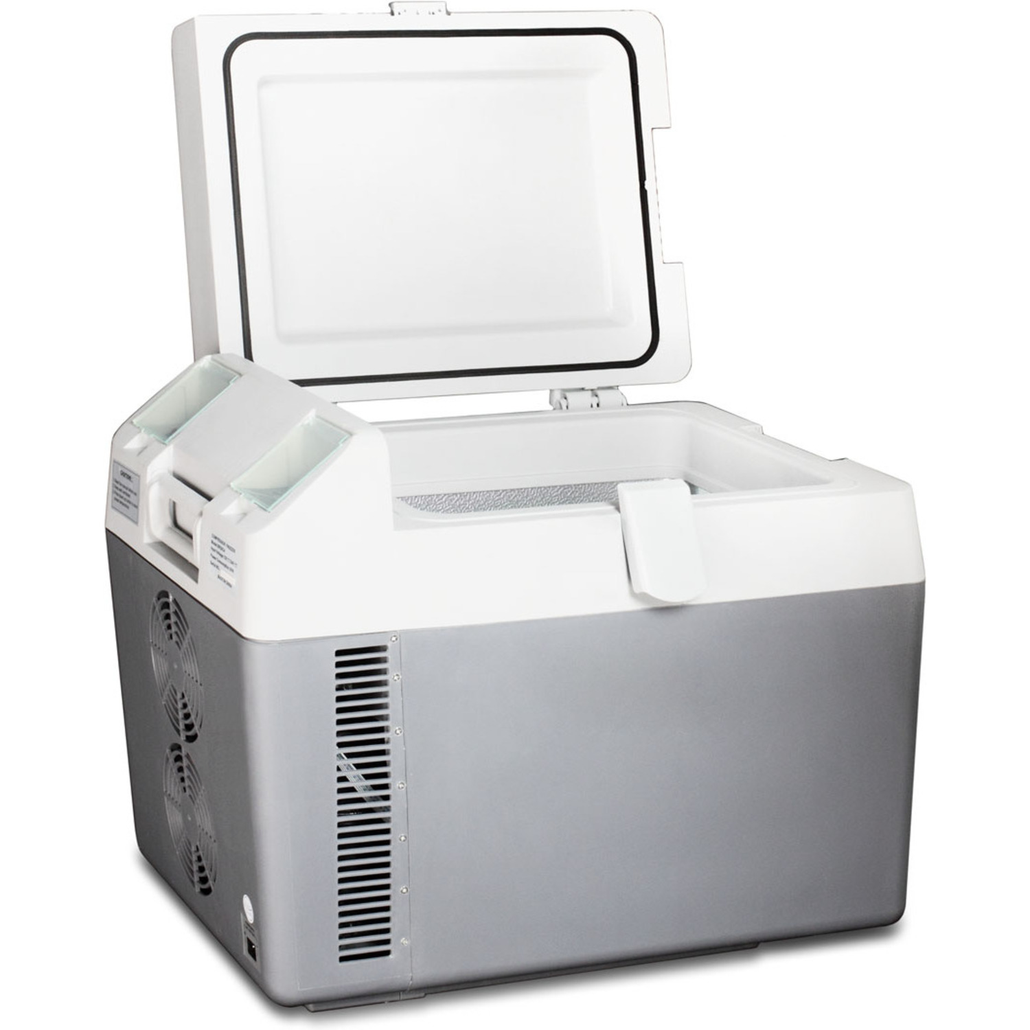 - Portable 12V/24V cooler with sturdy handles for easy carrying