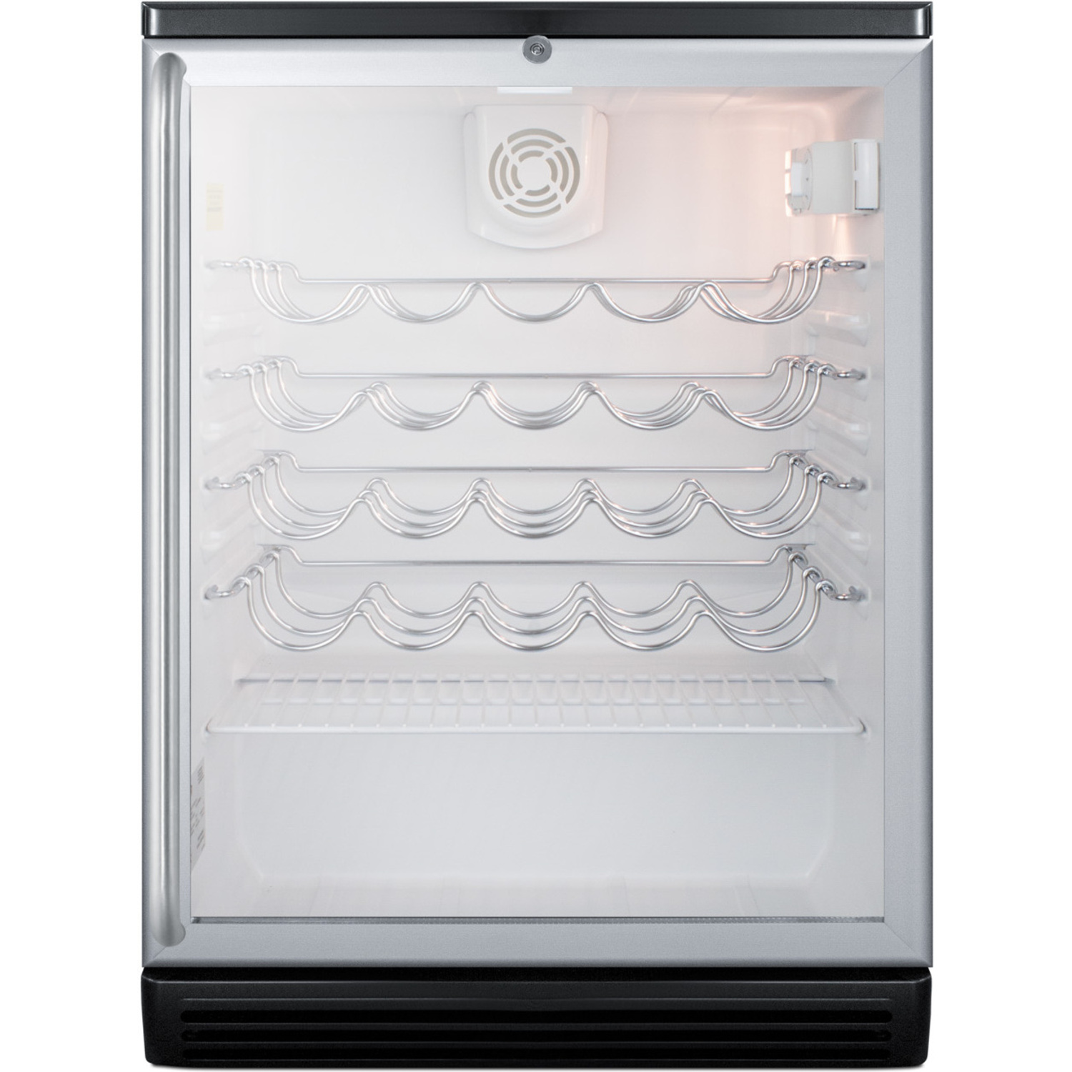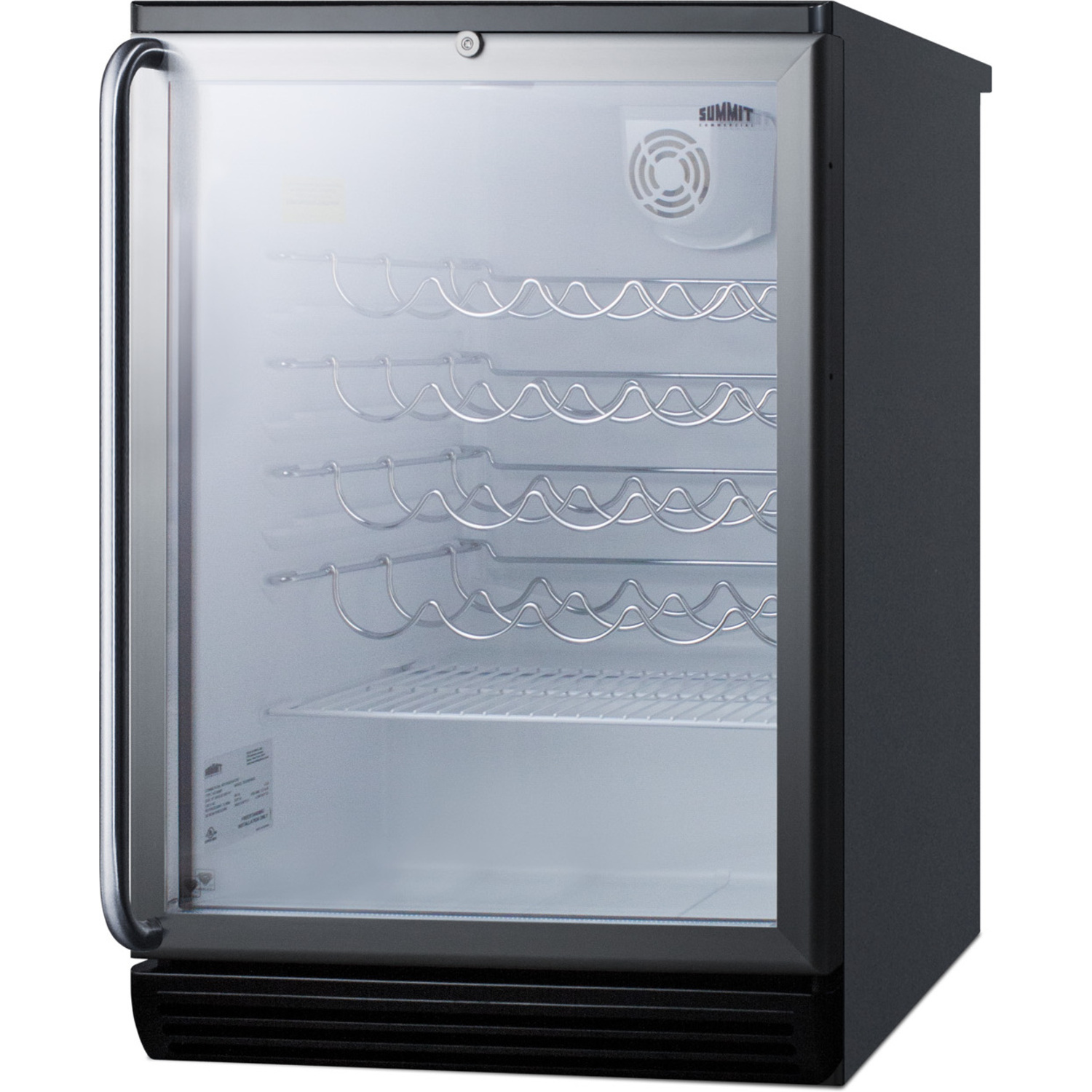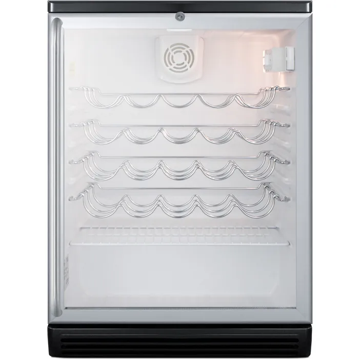 The SWC6GBLSH is conveniently sized at just 24" wide and deep. It comes with a fully finished black cabinet for freestanding use. The double pane tempered glass door offers a full view with added protection. We include a full-length towel bar style handle in brushed stainless steel to complete the professional look. The lock is located towards the top of the door for easier access.