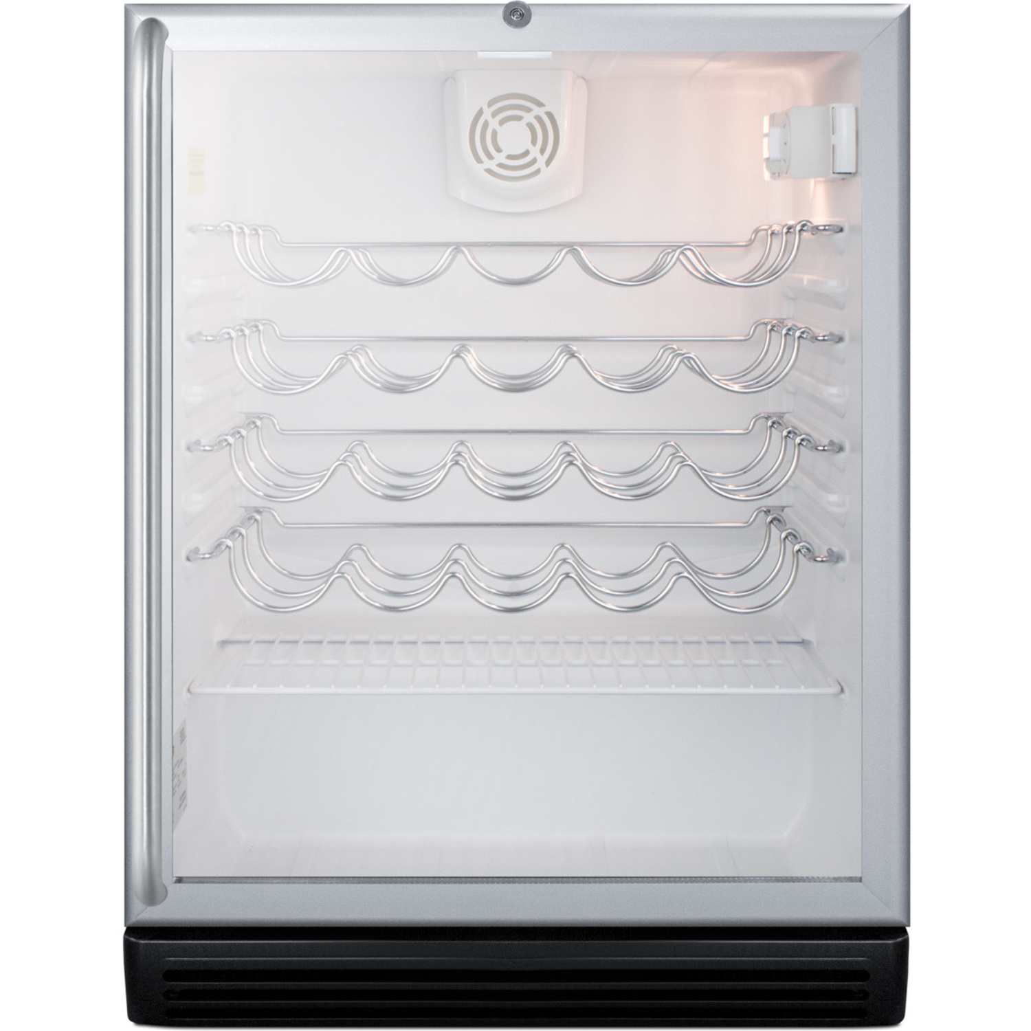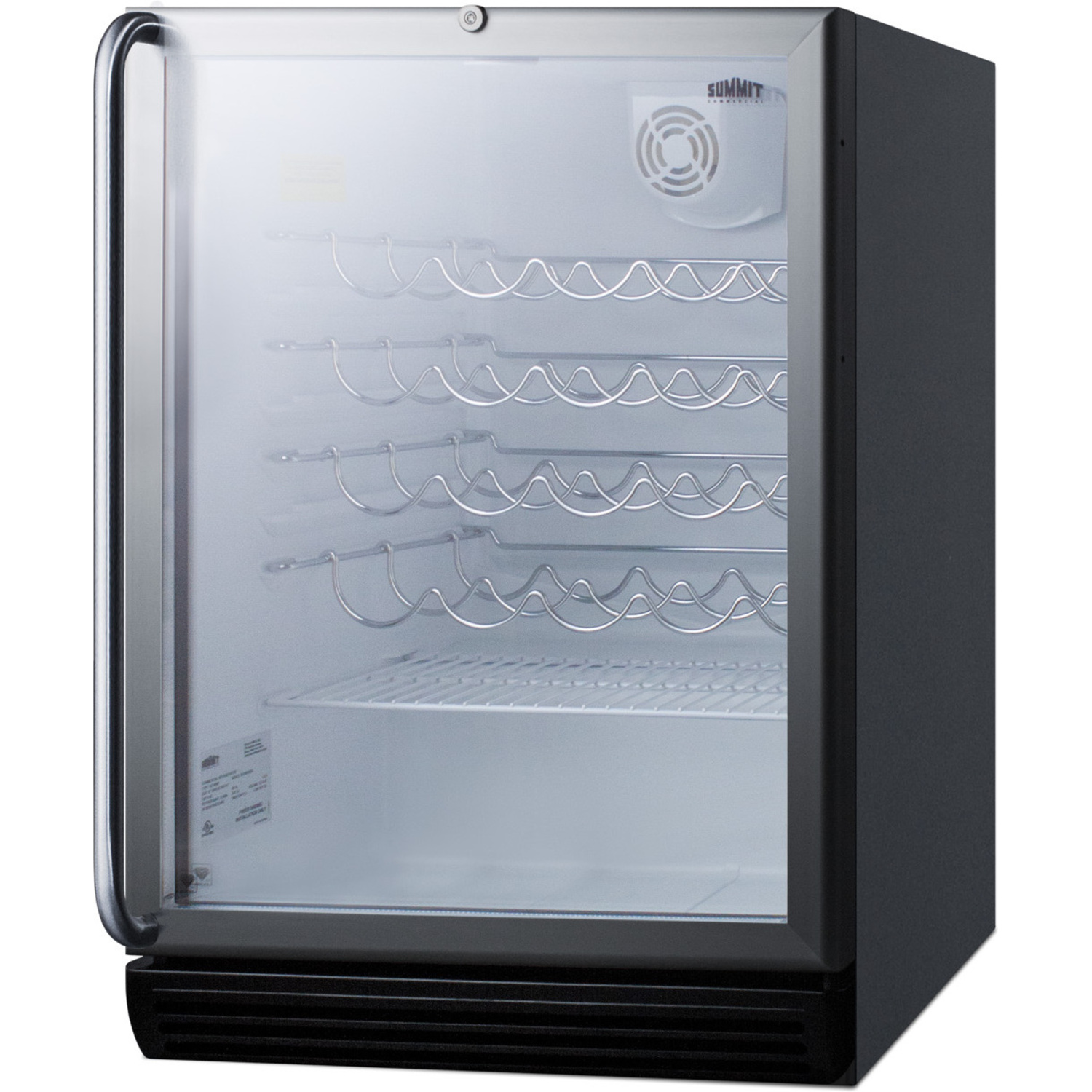 The SWC6GBLSHADA comes in a convenient 24" footprint, with a 32" height ideal for use in ADA compliant settings. The double pane tempered glass door offers a full view with added protection and includes a full-length towel bar style handle in brushed stainless steel. The lock is located towards the top of the door for easier access. This unit has a black cabinet and is designed for freestanding use. Built-in versions are also available.