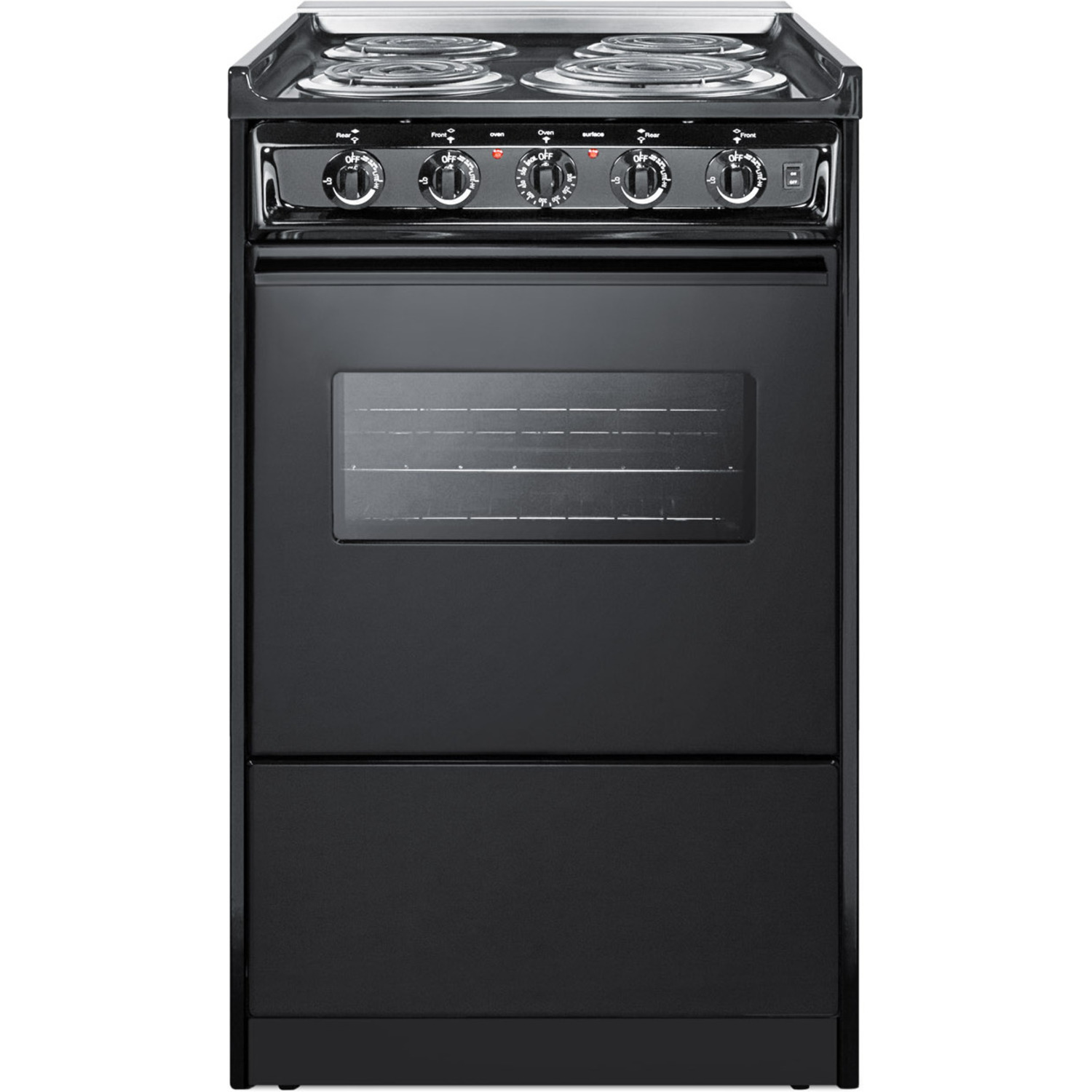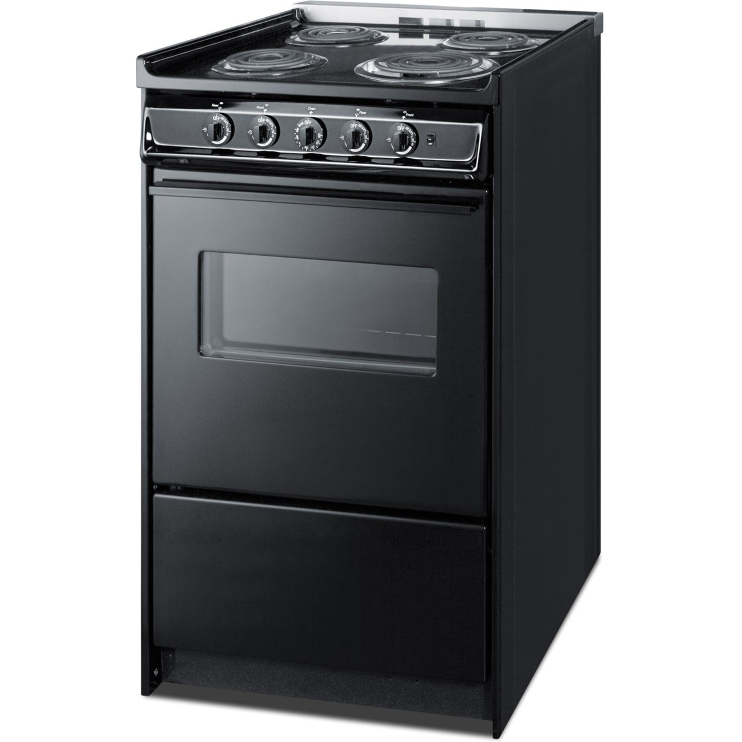 Summit 20 inch Wide Slide-in Coil-top Electric Range In Black With Oven Window TEM110CRW
