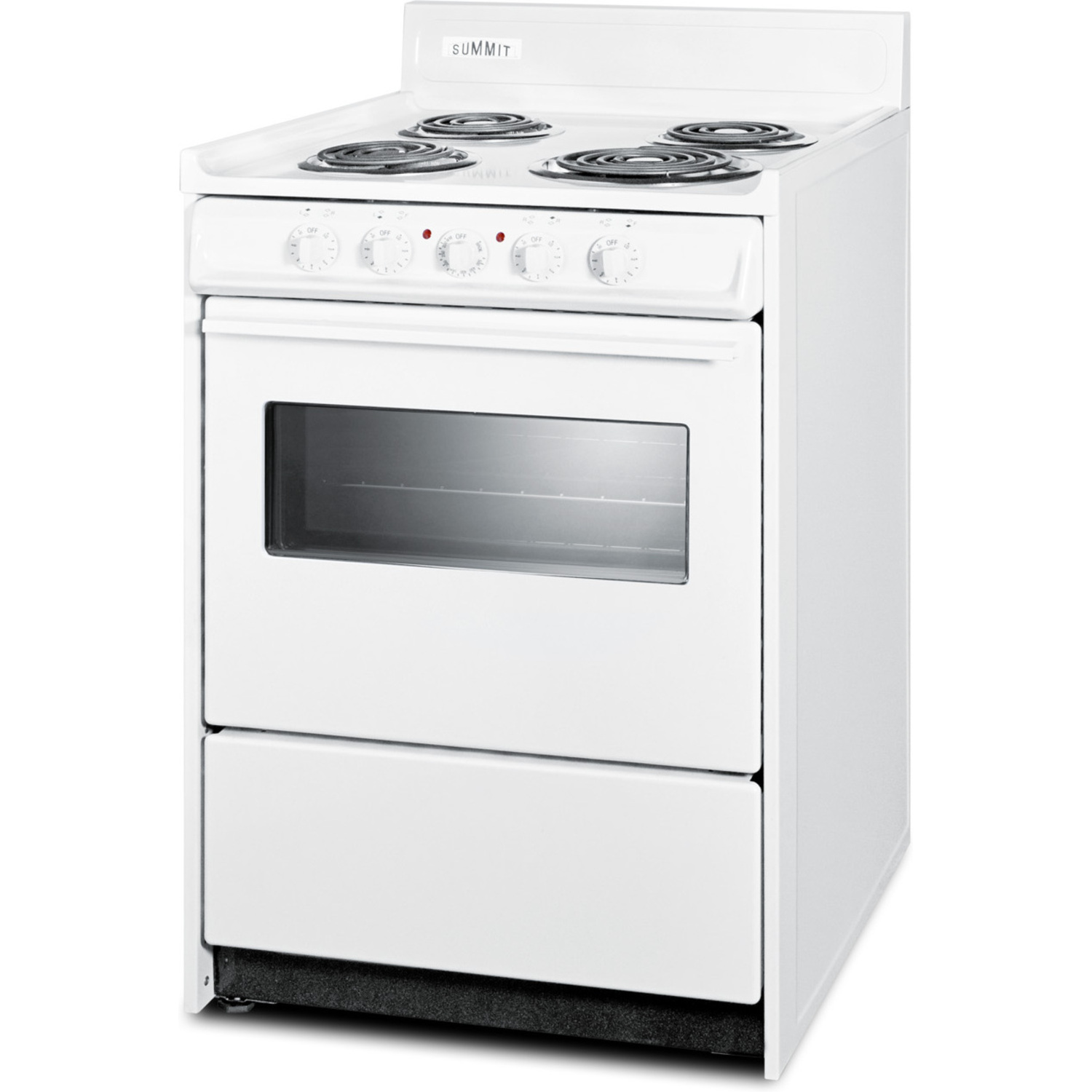 Summit 24 inch Wide Style Coil-top Electric Range In White With Storage Compartment And Oven Window WEM610W