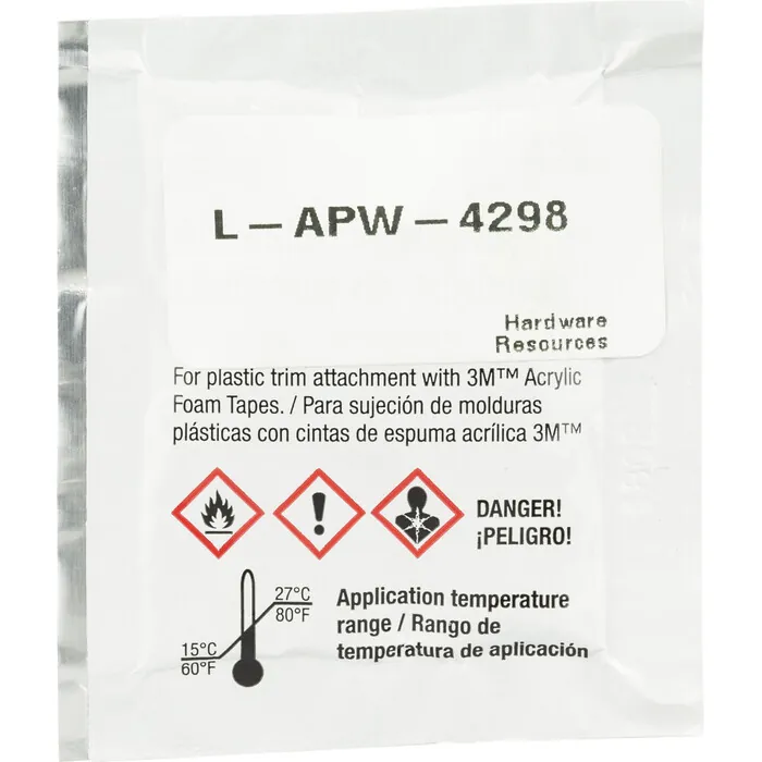 3M sponge applicator liquid primer for cleaning and preparing finished wood, melamine, and plastic surfaces for maximum bonding of 3M Ultra Bond doubled-sided tape.