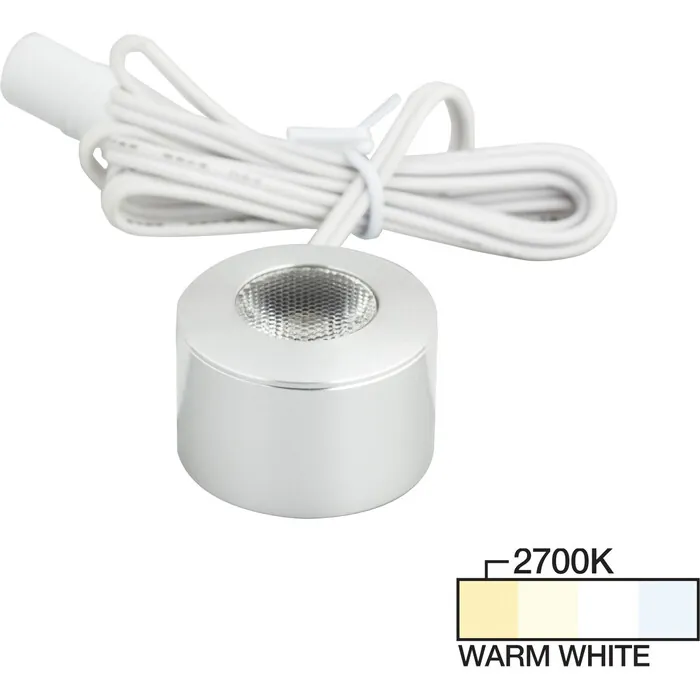 Task Lighting 105 Lumens/Fixture 12-volt Accent Output Mini Round Series Puck Light, Single-White, Brushed Aluminum, Warm White 2700K, 840002501118, L-MR-CL-1BA-27