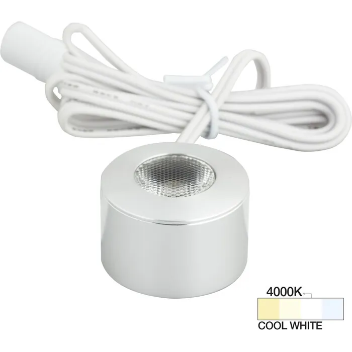 Task Lighting 105 Lumens/Fixture 12-volt Accent Output Mini Round Series Puck Light, Single-White, Brushed Aluminum, Cool White 4000K, 840002501125, L-MR-CL-1BA-40