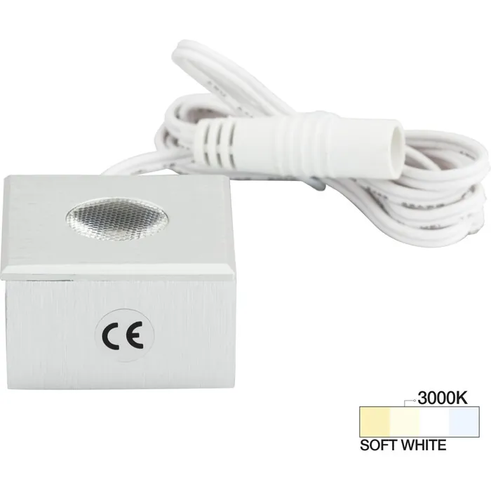 Task Lighting 105 Lumens/Fixture 12-volt Accent Output Mini Square Series Puck Light, Single-White, Brushed Aluminum, Soft White 3000K, 843512079443, L-MS-CL-1BA-30