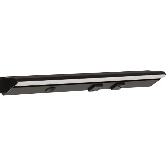 Task Lighting 18-1/2 inch 400 Lumen/Ft. High Output Direct Voltage (DV) Series Lighted Power Strip, Single-White, 600 Lumens/Fixture, Black Finish, Black Receptacles, Daylight White 5000K, 840002540735, LP18QD6NDBBK50