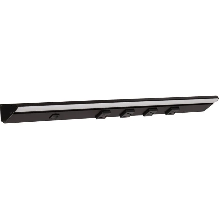 Task Lighting 24-1/2 inch 400 Lumen/Ft. High Output Direct Voltage (DV) Series Lighted Power Strip, Single-White, 800 Lumens/Fixture, Black Finish, Black Receptacles, Cool White 4000K, 840002541046, LP24QD8NDBBK40