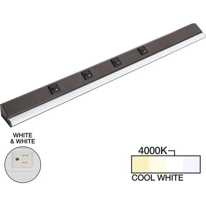 The Lighted Power Strip combines receptacles and LED lighting into one sleek, multi-purpose fixture perfect for use in the kitchen, office, or anywhere that needs light and power within reach. Customize the length, or add additional receptacles or switches for lights and disposal. The RM series uses a remote power supply, ordered separately, to power multiple lights simultaneously. Tamper resistant receptacles. Meets 2008 NEC. Mounting hardware included. Requires installation by licensed electrician.Fully assembled fixture with frosted, light-diffusing lens600 lumens per foot for bright, even lighting90+ CRI for true rather than faded colorsUL Listed to keep inspectors satisfiedDimmable with compatible dimmer50,000 hour LED life at 70% lumen maintenance means long-lasting illuminationOnly consumes 6 watts per foot despite higher light output
