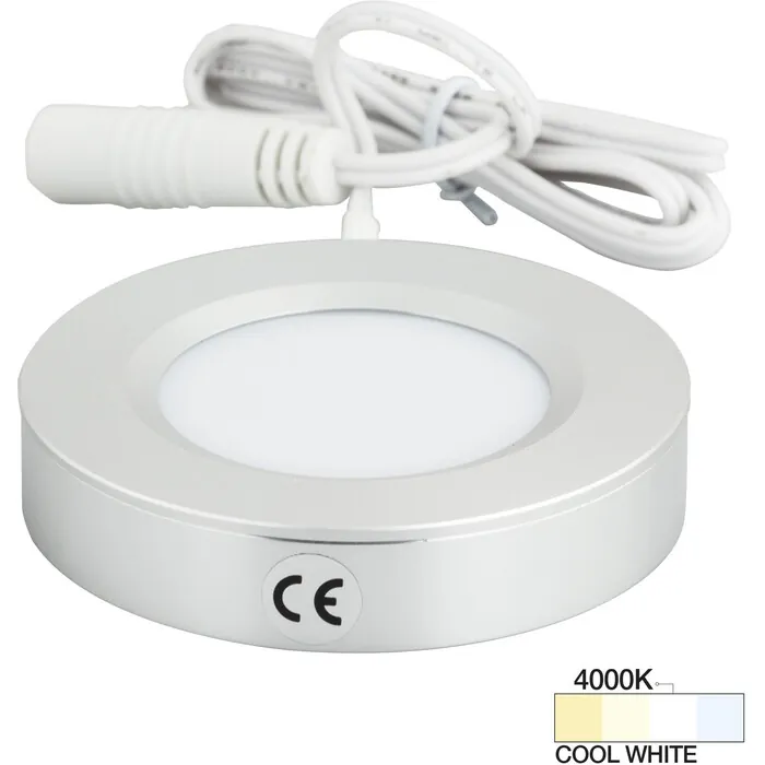 Task Lighting 180 Lumens/Fixture 12-volt Standard Output Pearl Series Puck Light, Single-White, Brushed Aluminum, Cool White 4000K, 843512080197, L-PS-FR-3BA-40
