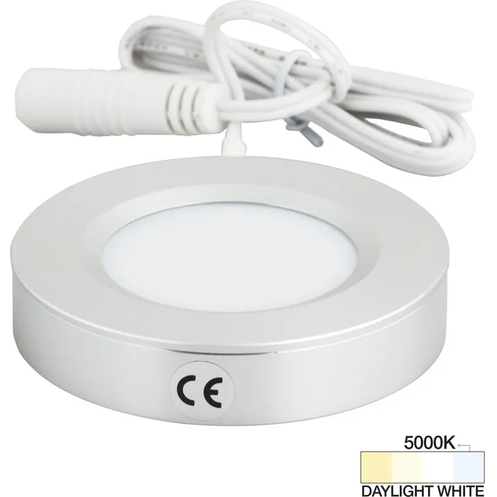 Task Lighting 180 Lumens/Fixture 12-volt Standard Output Pearl Series Puck Light, Single-White, Brushed Aluminum, Daylight White 5000K, 843512080203, L-PS-FR-3BA-50