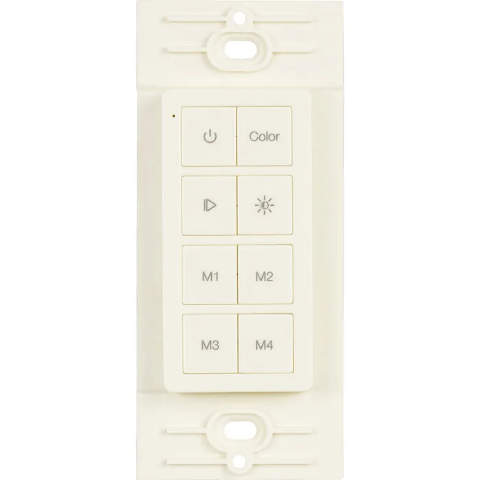 Chroma RGB 1 Zone wireless controller, used with the Chroma RGB wireless receiver or WAV Smart RGB Receiver for wireless control of the RGB Inferno tape lighting. Can be wall mounted behind a standard decora switch plate.Control RGB Color Changing lighting wirelesslyAttaches to mounting plate with a simple magnet for easy, yet mobile controlFits perfectly into a standard Decora style switch plate, not included, without the need for cutting into sheet rockBattery is only consumed while buttons are pressed, meaning years of battery lifeFull-range brightness and non-white color controlMemory buttons to save up to four favorite colorsSingle-touch pairing with wireless receiver for easy installation